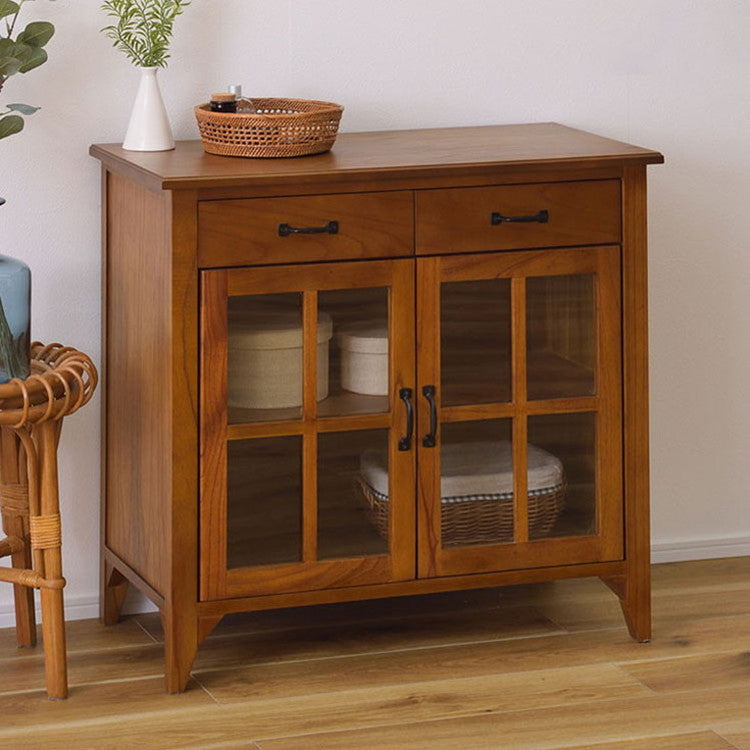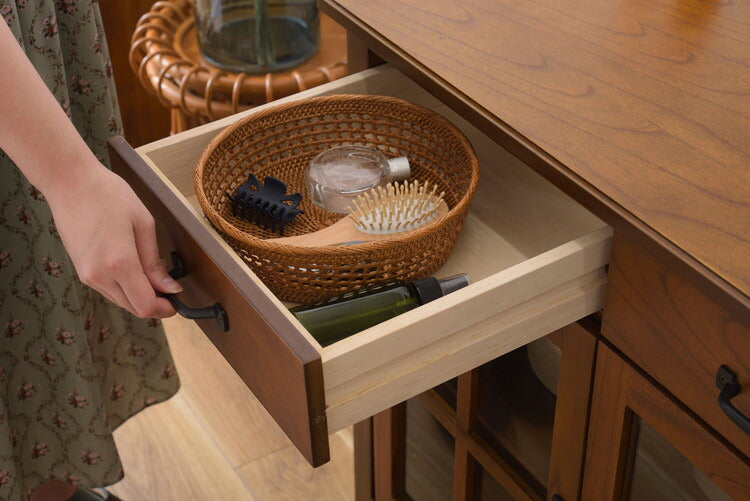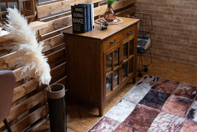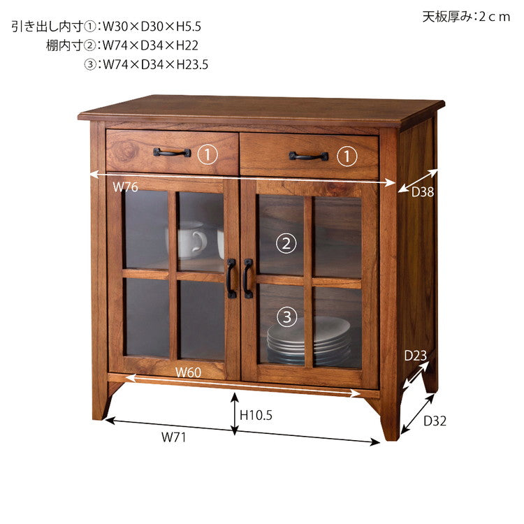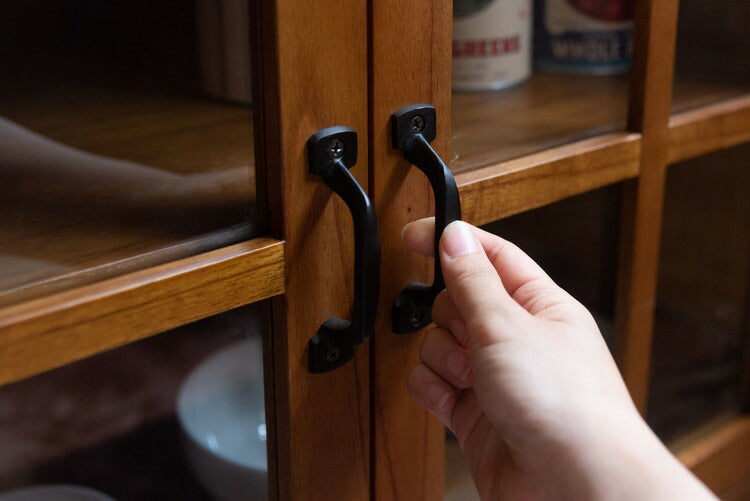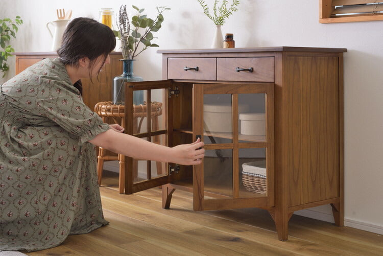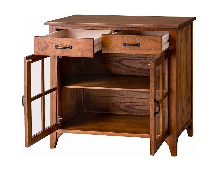 キャビネット ミンディ材 天然木 アンティーク スリム 省スペース 小さめ 黒アイアン ブラウン 収納 扉付き 棚付き 引き出し付き ガラス扉 おしゃれ 模様替え(代引不可)