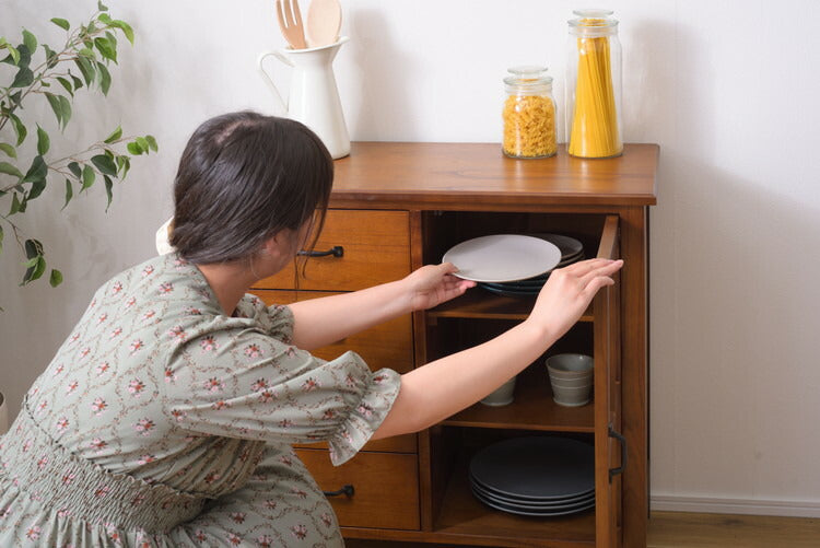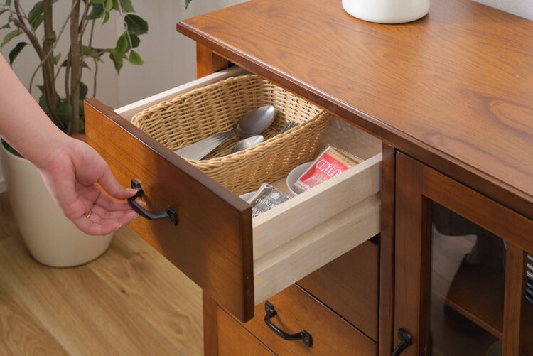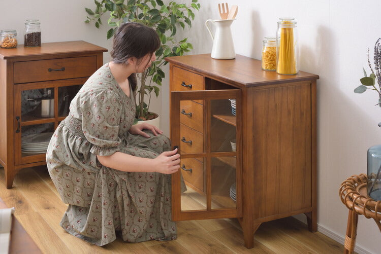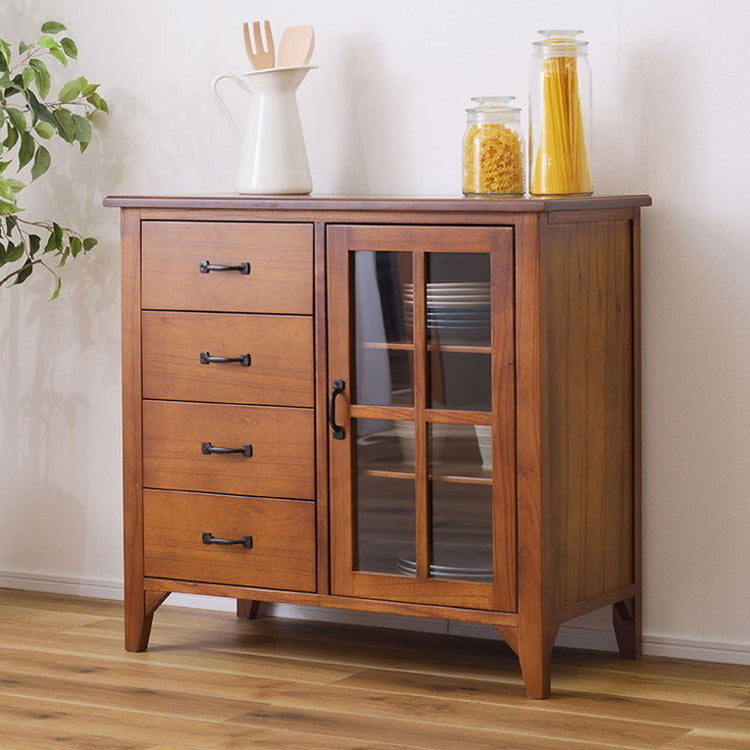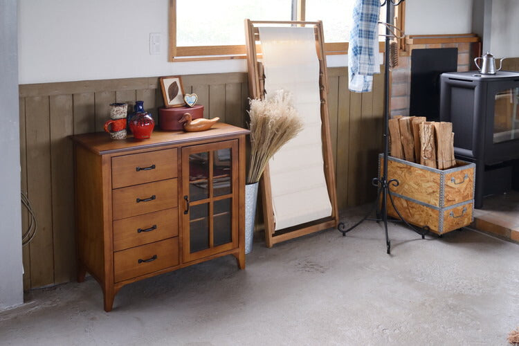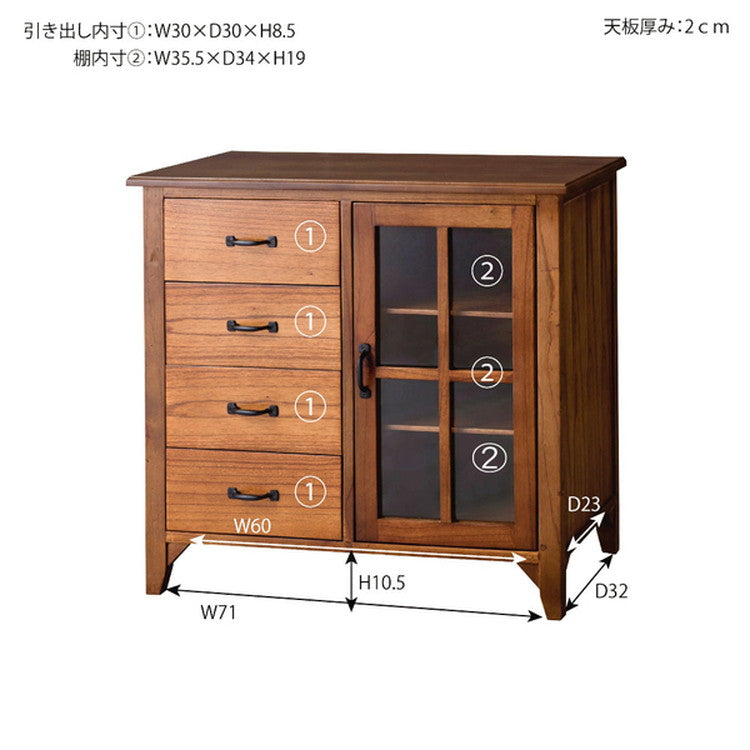 キャビネット ミンディ材 天然木 アンティーク スリム 省スペース 小さめ 黒アイアン ブラウン 収納 扉付き 棚付き 引き出し付き ガラス扉 おしゃれ 模様替え(代引不可)