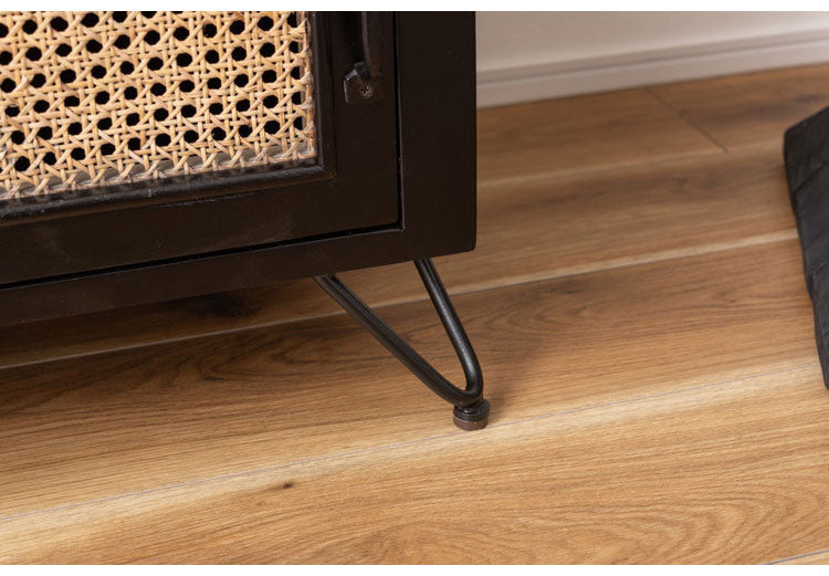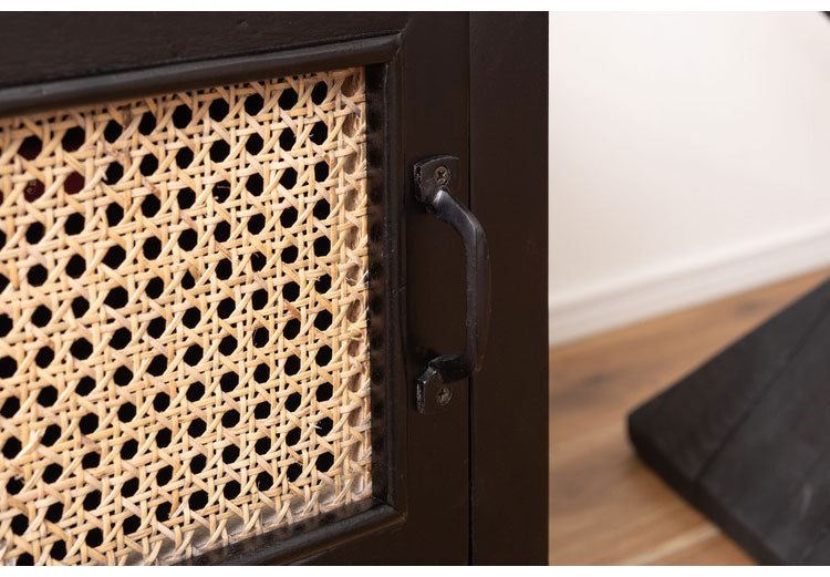 ●温かみがありながら、クールな印象も与えるブラックのウッド素材と、モダンな雰囲気のある天然ラタンの組み合わせは重厚感あるブラックにラタンのベージュが差し色になり、お部屋に圧迫感を与えず抜け感のあるトレンド感溢れるデザインに。