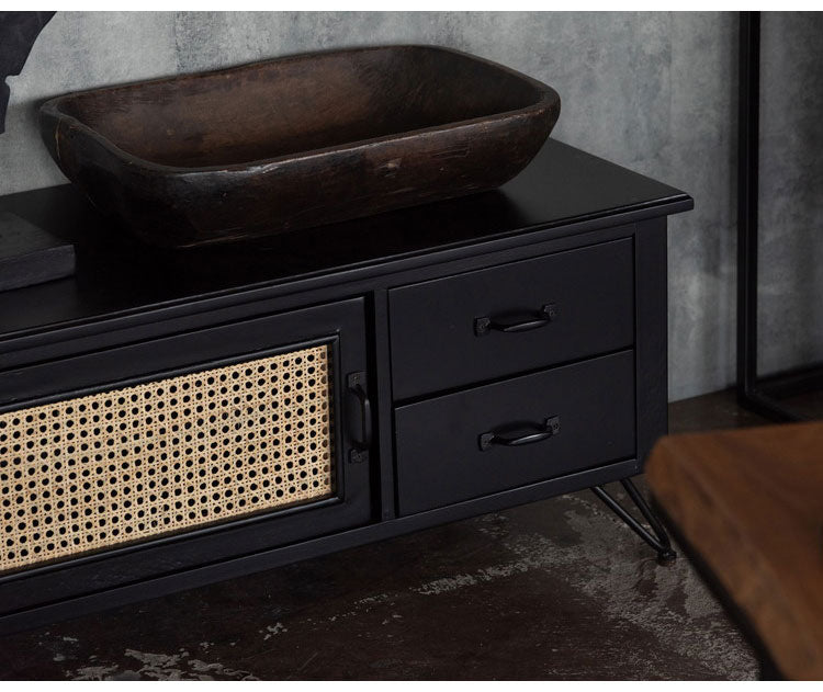 ●天然ラタンを使用したブラックカラーのTVボード&チェスト
