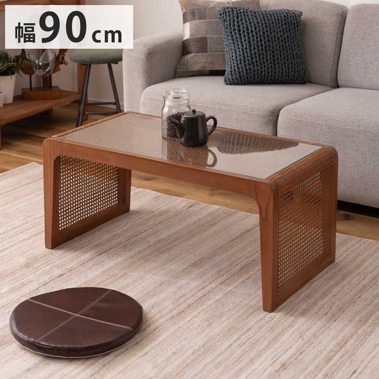 センターテーブル ラタン 籐 センターテーブル テーブル 机 ラタンセンターテーブル ラタンテーブル ローテーブル ガラス天板 ガラス クリア クリア天板 メッシュ ガラステーブル 籐編み(代引不可)