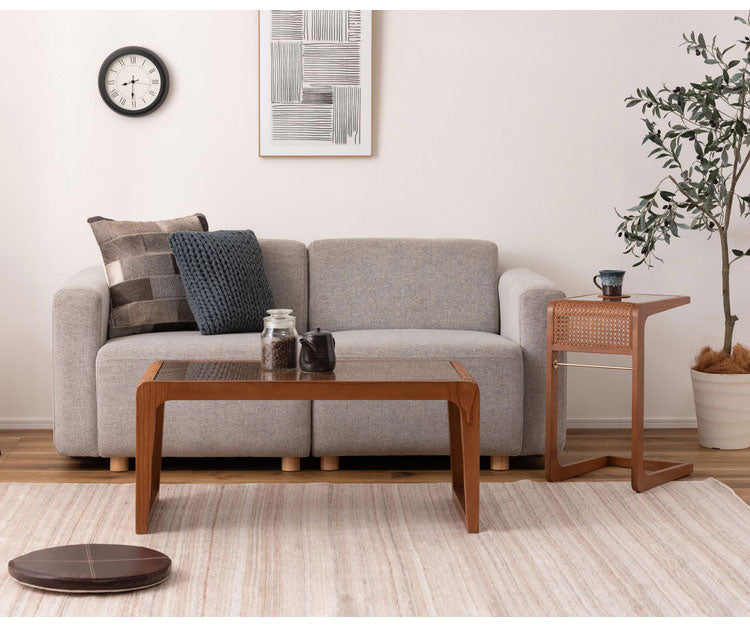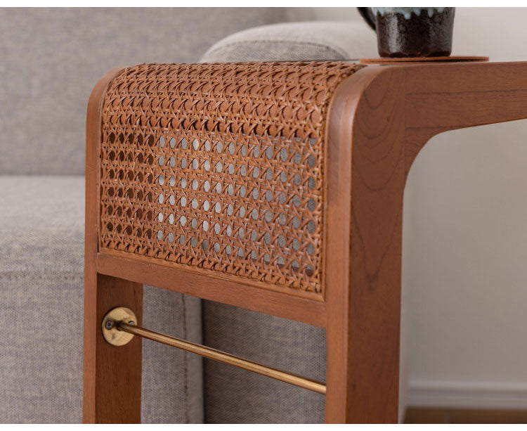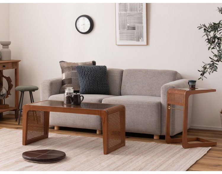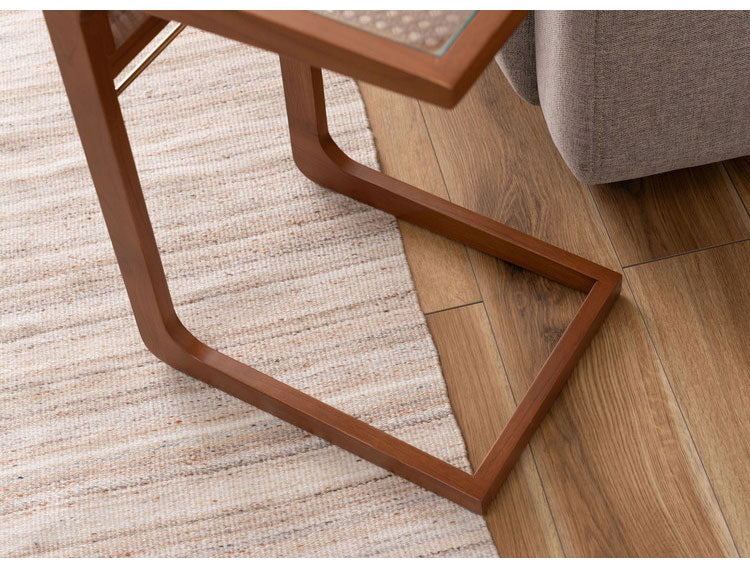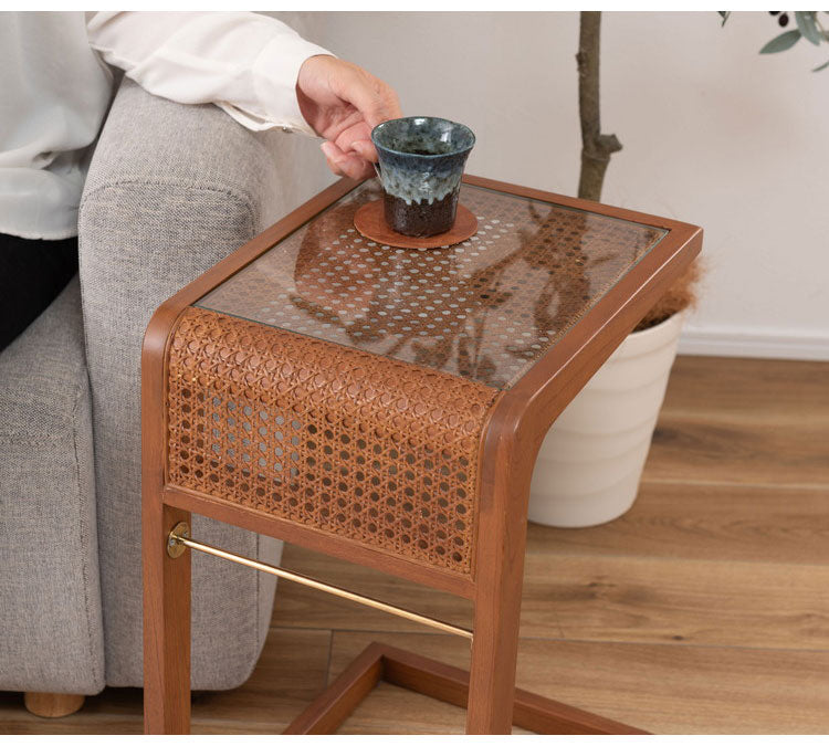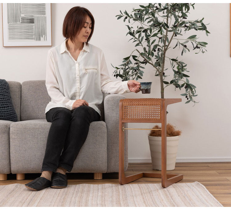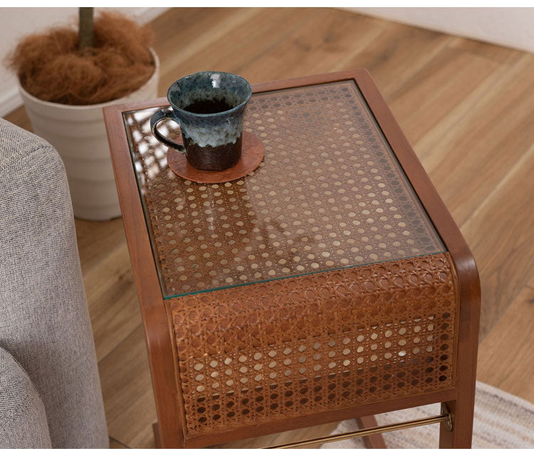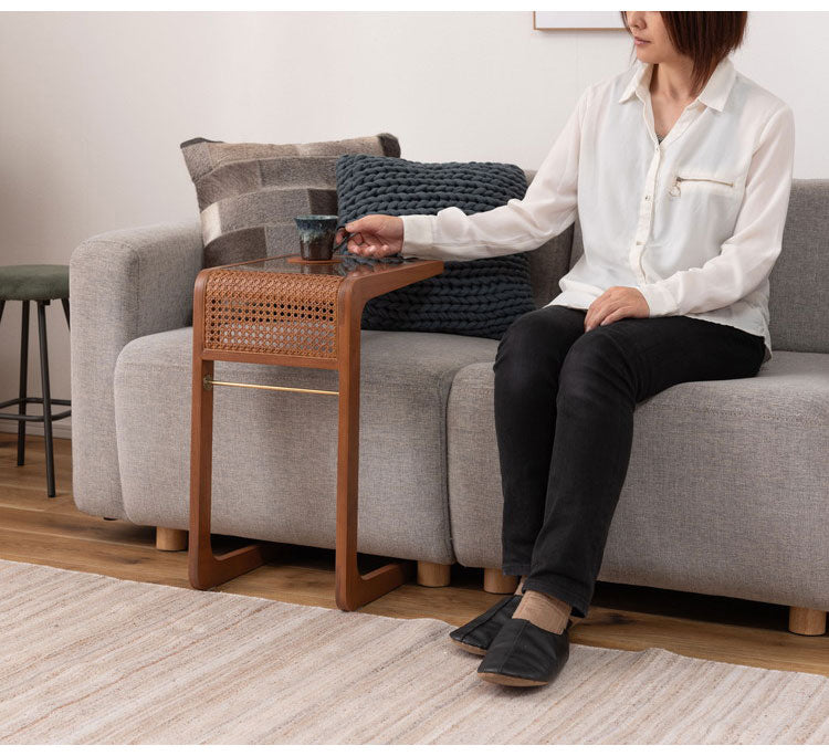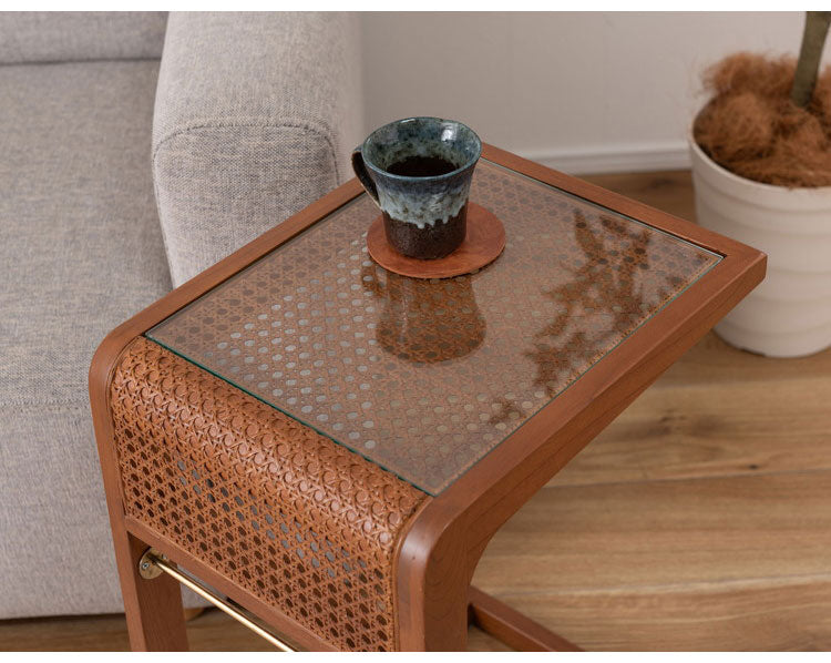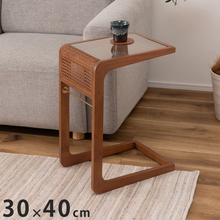 天然ラタンで編まれたメッシュを全体にあしらったガラステーブルシリーズ。カゴメ格子という伝統的な編み方は程よい抜け感と軽量な設計も魅力です。落ち着いた印象のブラウンカラーは様々なシーンによく合います。