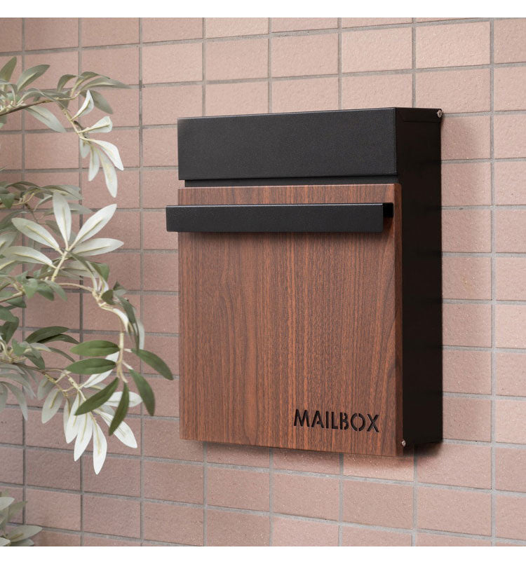 ポスト 壁掛け 壁付け 壁面 ウォールポスト メールボックス おしゃれ スリム 鍵付き スチール 木目調 黒 ブラック 白 ホワイト(代引不可)