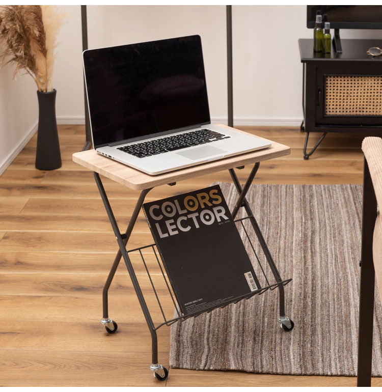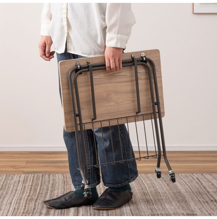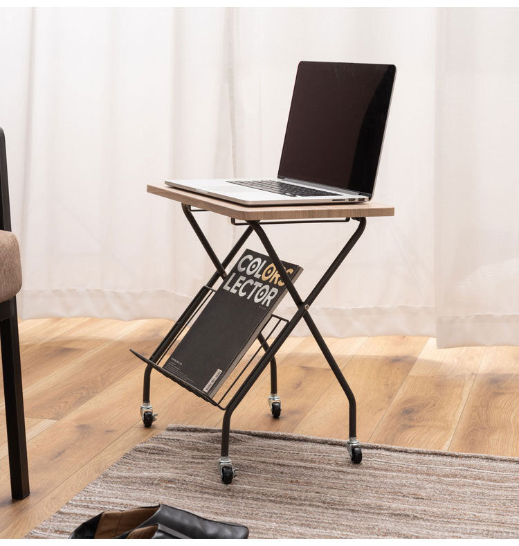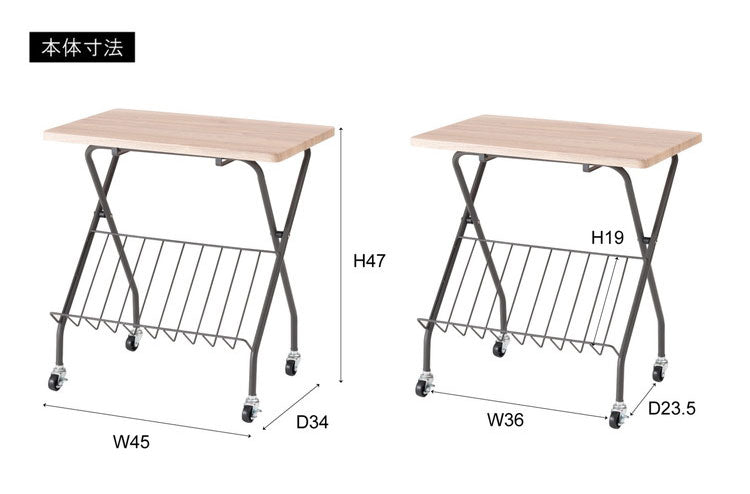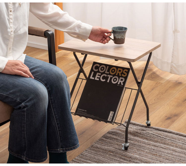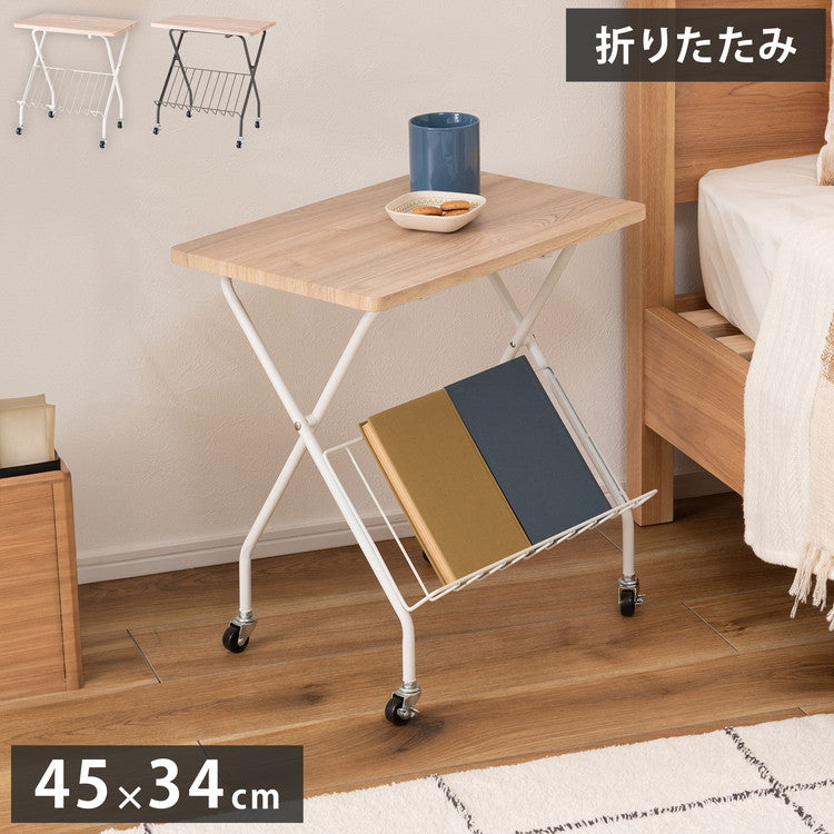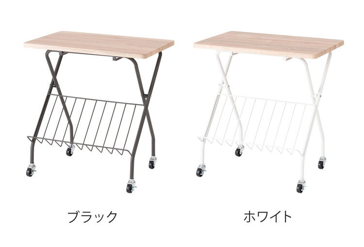 フォールディングサイドテーブル 折りたたみ式テーブル テーブル フォールディング キャスター付き 収納 飾り棚 移動 転がる おしゃれ 木目調 スチール 高さ47cm キッチン 作業デスク シンプル(代引不可)