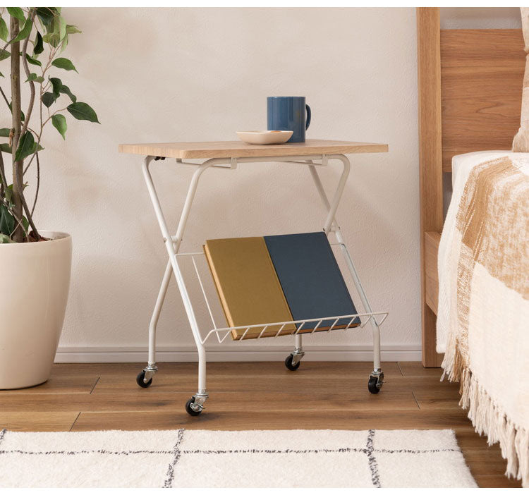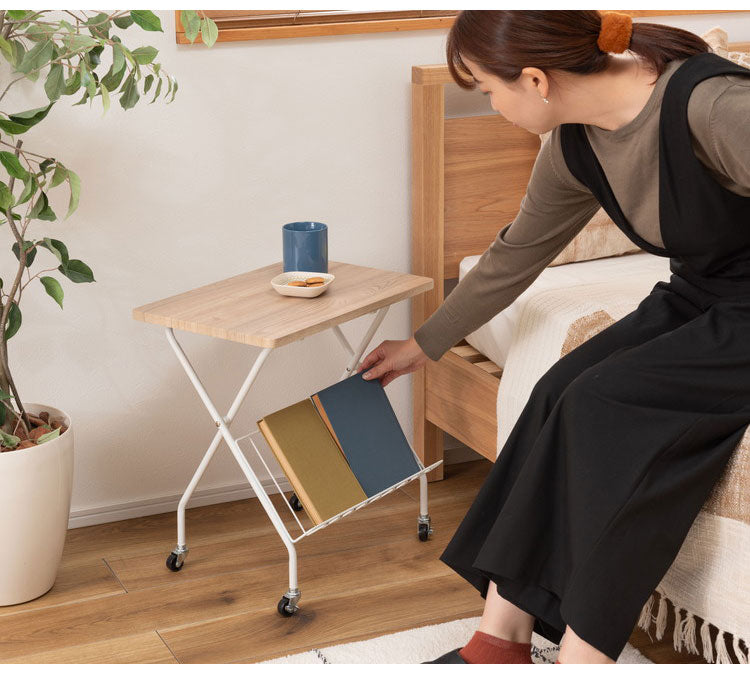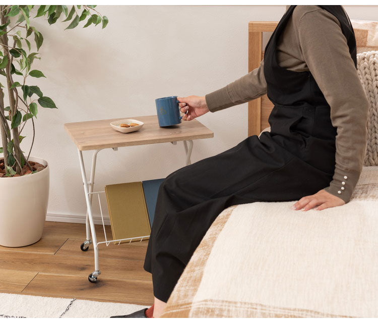 シンプルかつコンパクトな可動式のサイドテーブル。