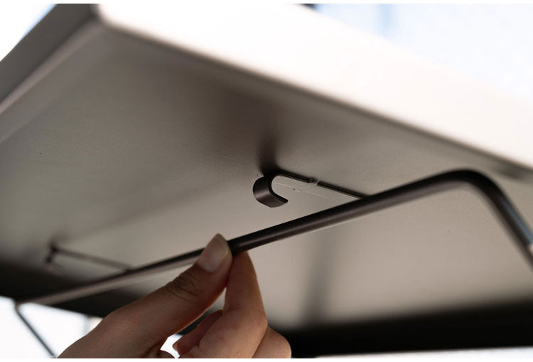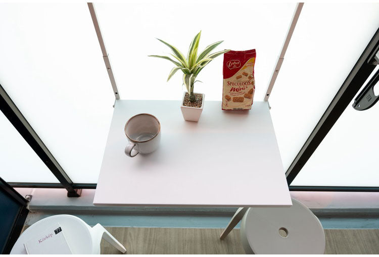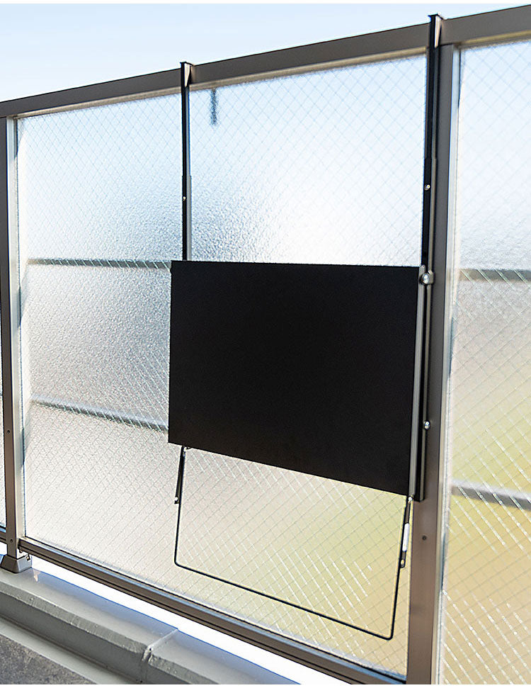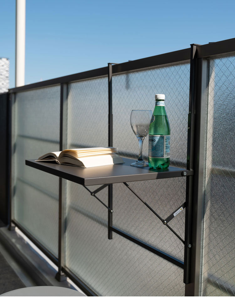 柵に引っ掛けて天板を広げれば、ベランダに自分だけの特別なテーブル空間が。