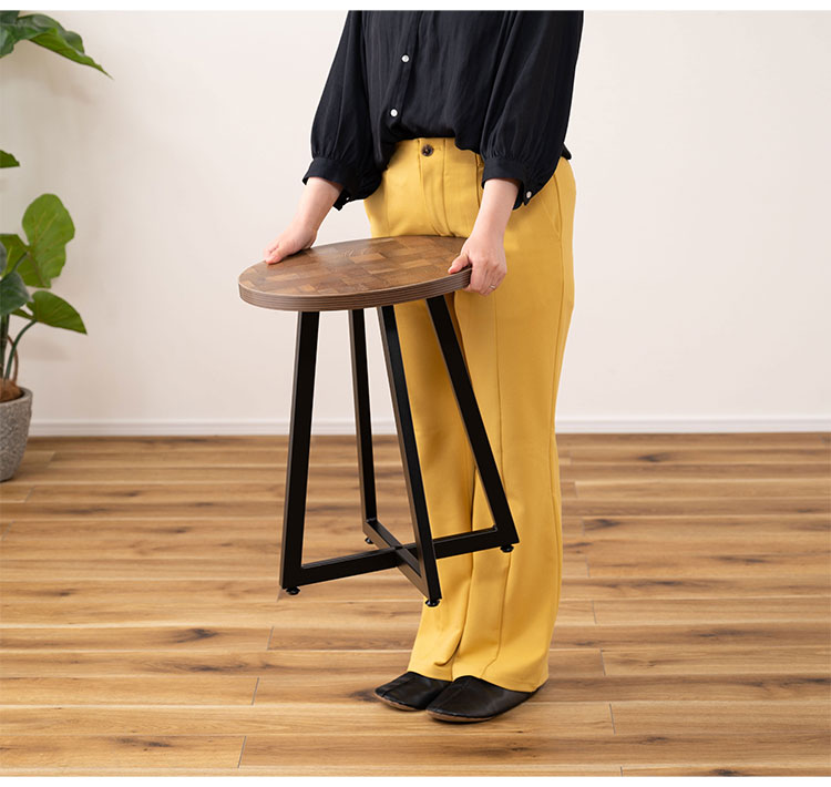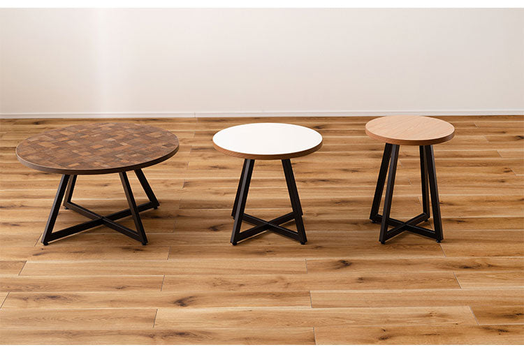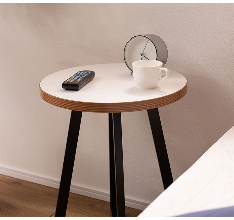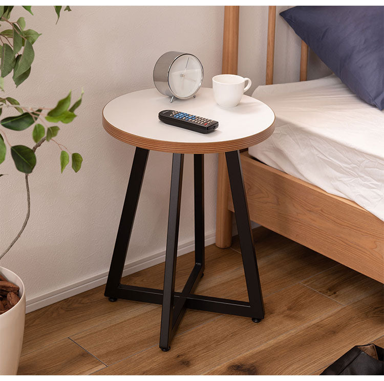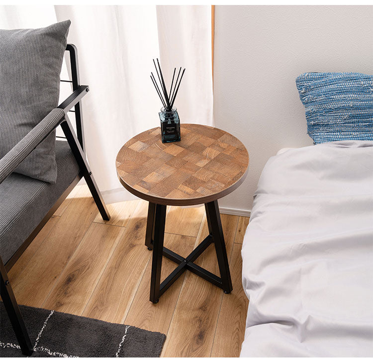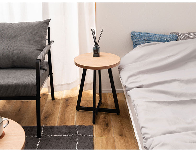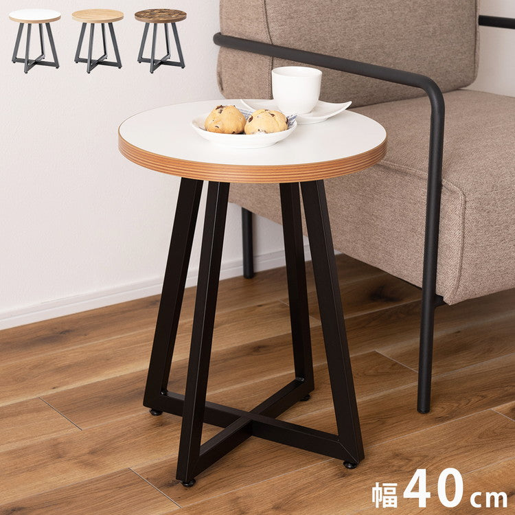 サイドテーブル Sサイズ ナイトテーブル 机 おしゃれ 丸型 円形 木目調 スチール 黒フレーム シンプル モダン インダストリアル ナチュラル ブラウン ホワイト 白 新生活(代引不可)
