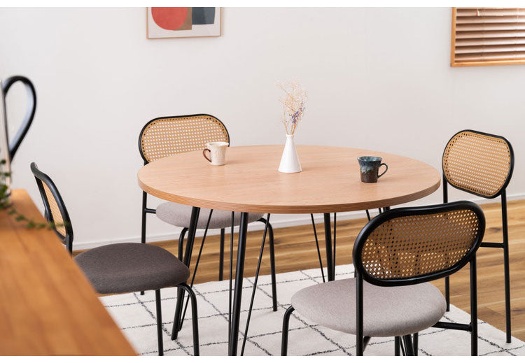 ●温もりのある木目調デザインとシンプルなアイアンが特徴のダイニングテーブル。