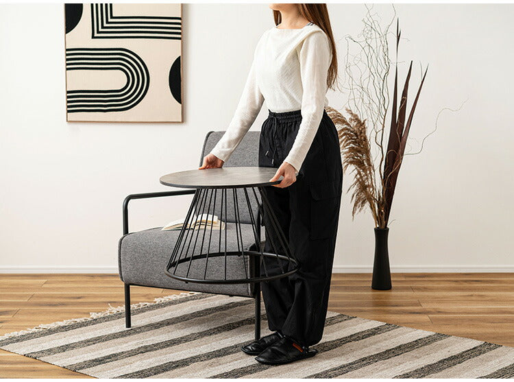 ラウンドテーブルL PT-341 東谷 テーブル ラウンドテーブル 丸 サイドテーブル ストーン柄 石目調 スチール アイアン 北欧 モダン インダストリアル シンプル カフェ おしゃれ リビング ソファ(代引不可)