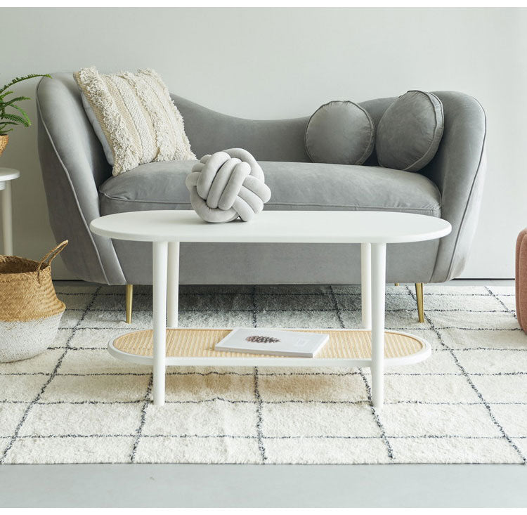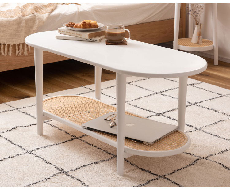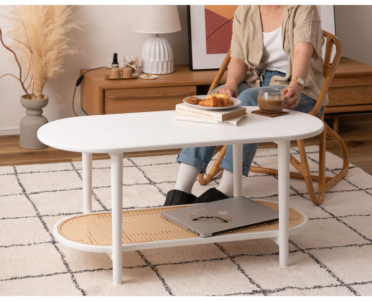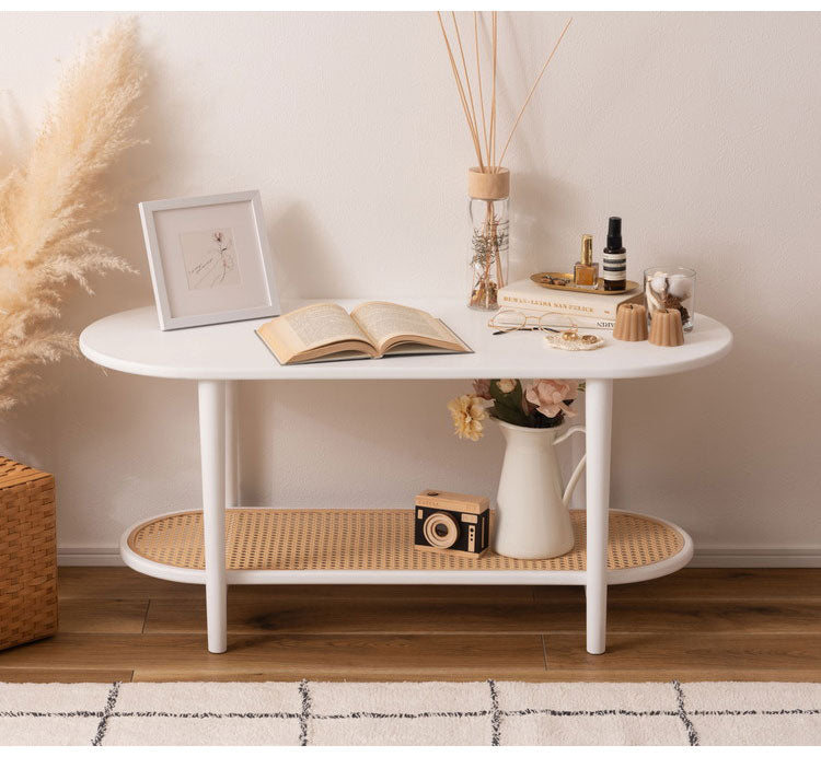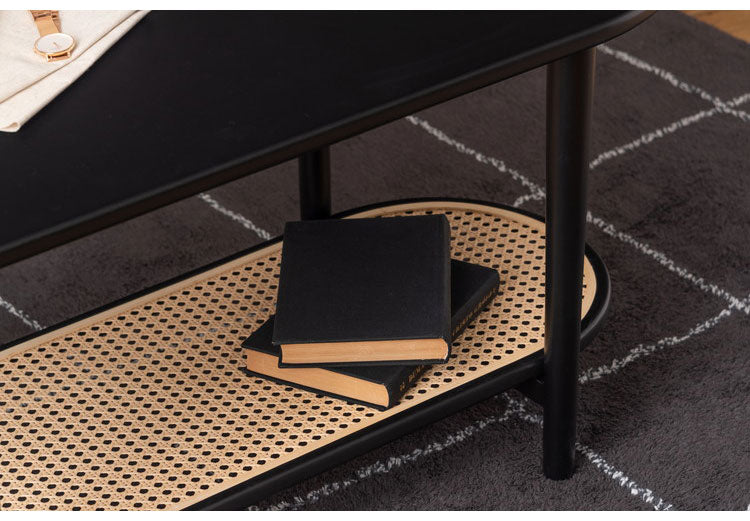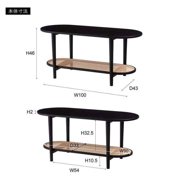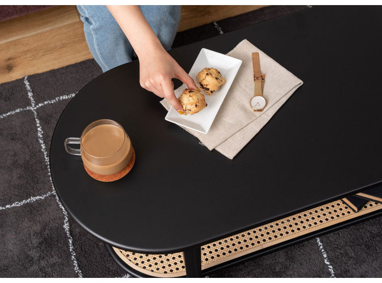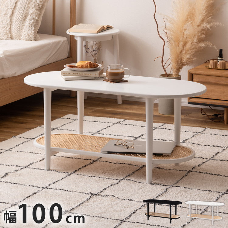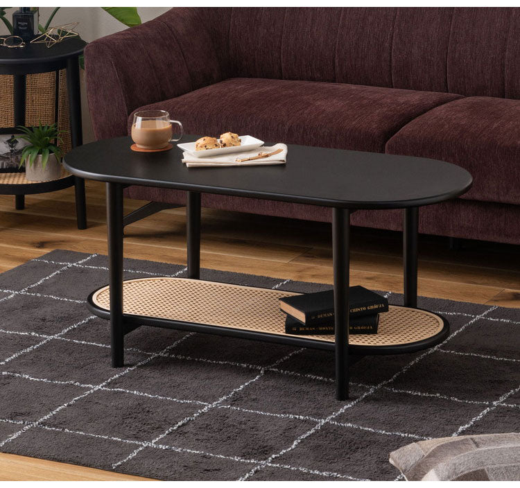 リビングテーブル テーブル リビングテーブル センターテーブル 飾り棚 楕円 丸 ラタン 二段 2段 北欧 韓国インテリア シンプル ナチュラル 寝室 ソファーサイド ブラック 黒(代引不可)