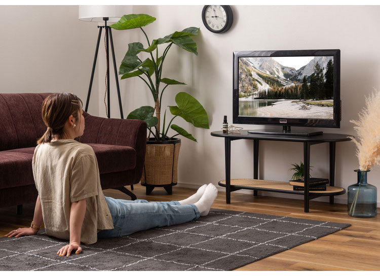 ●ポリプロピレン素材のラタン調デザインが目を引く丸みを帯びたフォルムのテーブルは、クールなイメージにもガーリーなイメージにもマッチするデザイン。