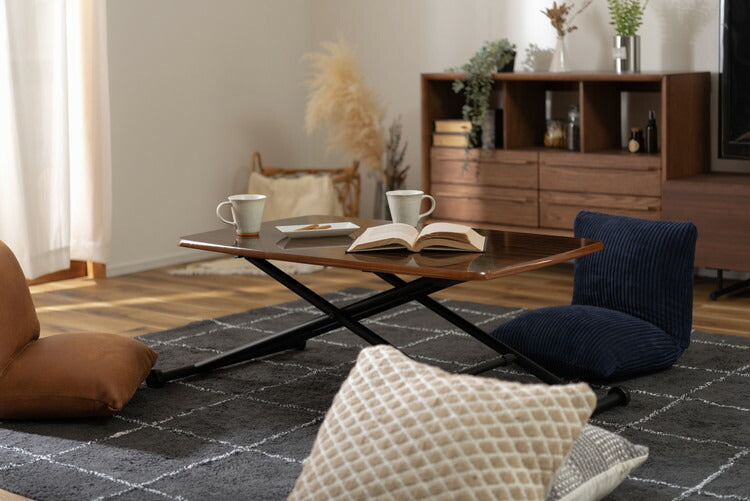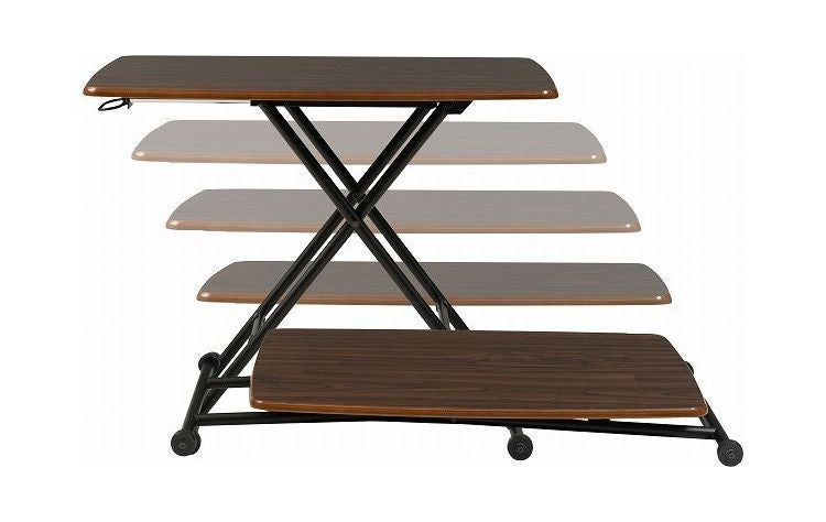 テーブル リフトテーブル 昇降テーブル センターテーブル 鏡面 折りたたみ 昇降 便利 ローテーブル ダイニング ブラウン(代引不可)