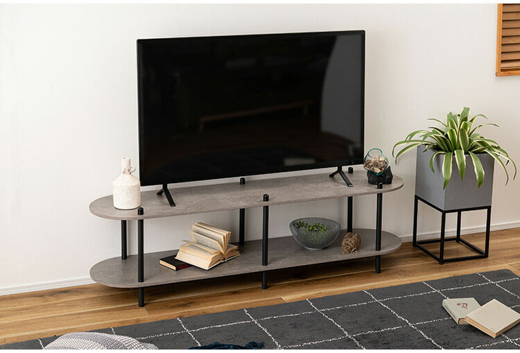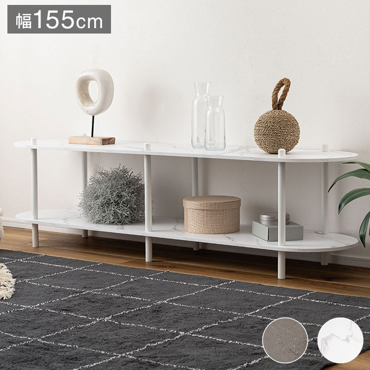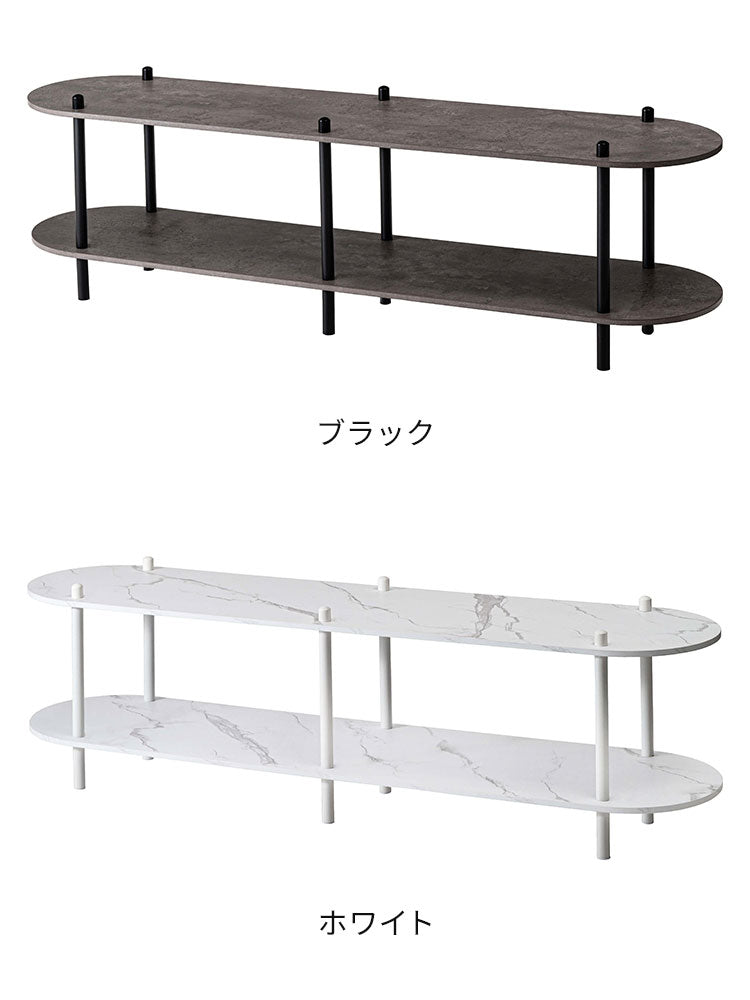 オープンラック2段 PT-563 東谷 オープンラック ラック 収納棚 ディスプレイラック 大理石調 石目調 2段 シック モダン 黒 ブラック 楕円形 ストーン柄 リビング 見せる収納(代引不可)