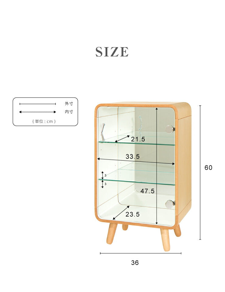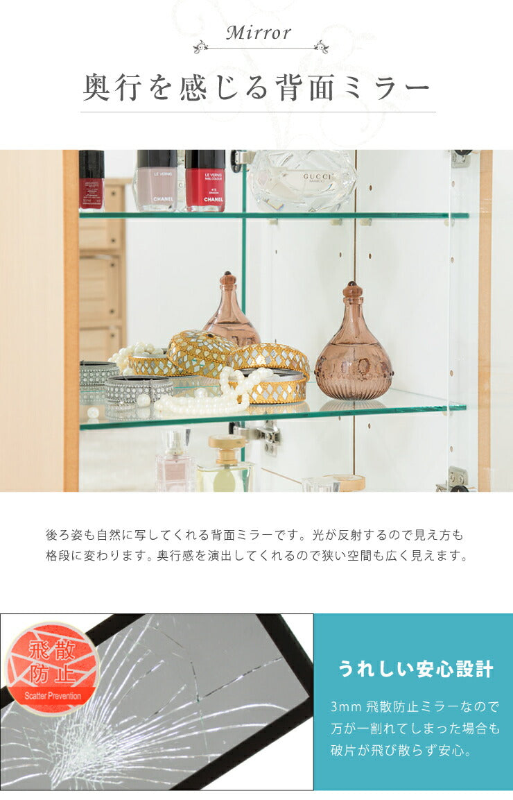 コレクションケース 幅36cm 高さ60cm ガラスショーケース ディスプレイラック 収納 おしゃれ 木製 背面ミラー かわいい 北欧(代引不可)