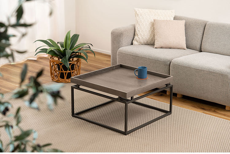 デザイン性の高い脚がモダンなテーブル 上品でシックな大人の雰囲気漂う、リビングテーブル。シャープなスチール脚がクールな印象を与え、空間を際立たせます。