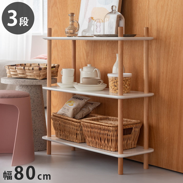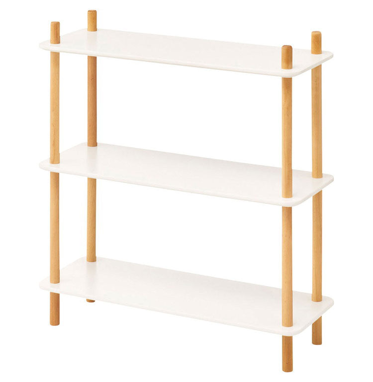 ●ホワイトの棚と天然木のナチュラルカラーな支柱が優しい印象を与えてくれるラックです。使う場所を選ばず様々な場所で活躍してくれるラックは、オープンタイプなので、壁面に設置するだけでなく空間の間仕切りとしても、抜け感を与えながら圧迫感無く使用する事が出来ます。