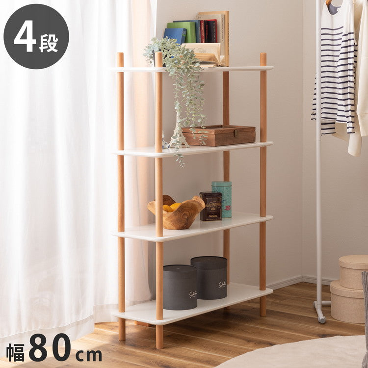 ●ホワイトの棚と天然木のナチュラルカラーな支柱が優しい印象を与えてくれるラックです。使う場所を選ばず様々な場所で活躍してくれるラックは、オープンタイプなので、壁面に設置するだけでなく空間の間仕切りとしても、抜け感を与えながら圧迫感無く使用する事が出来ます。