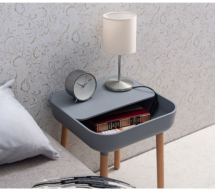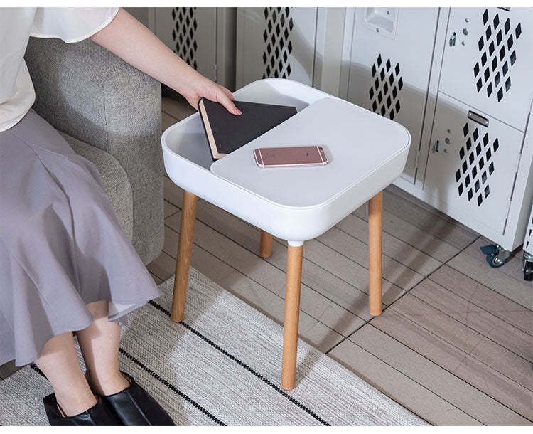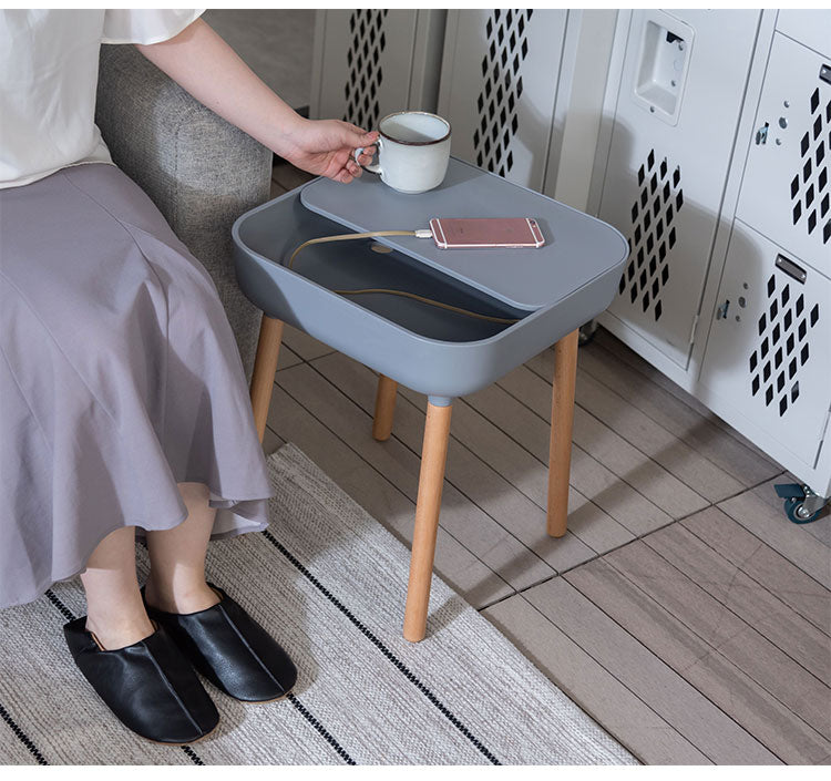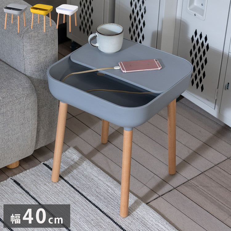 テーブル サイドテーブル ソファテーブル ナイトテーブル 省スペース 収納付き 軽量 コンパクト 北欧 おしゃれ シンプル モダン 木脚 樹脂製 コード穴付き グレー ホワイト イエロー マット(代引不可)