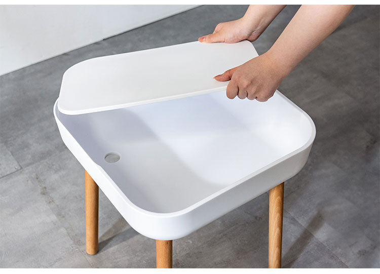 洗練されたデザインのコンパクトなサイドテーブル。天板の取り外しが可能。