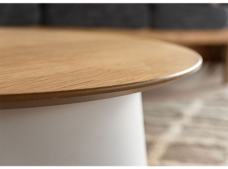 天板と脚部の異素材の組み合わせが特徴的なラウンドテーブル。
