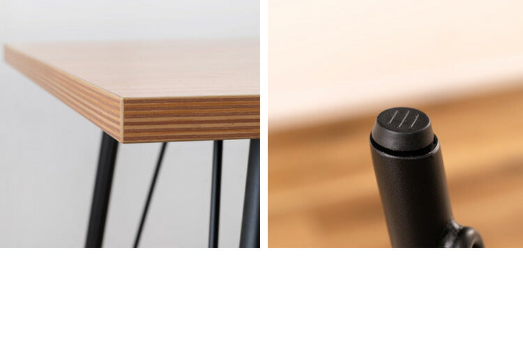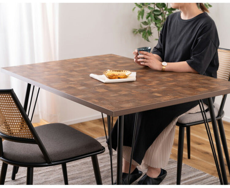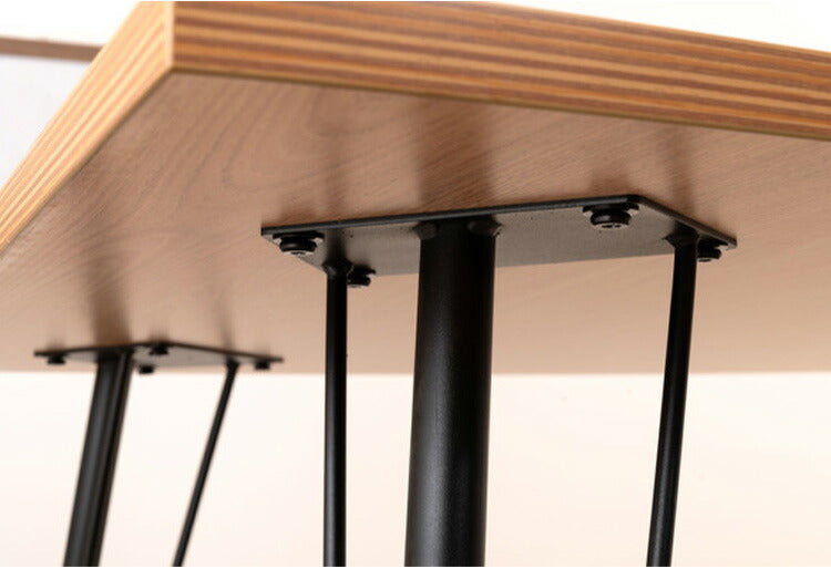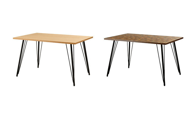 温もりのある木目調デザインとシンプルなアイアンが特徴のダイニングテーブル。