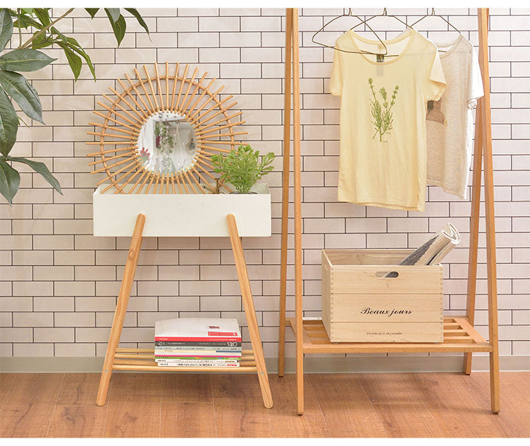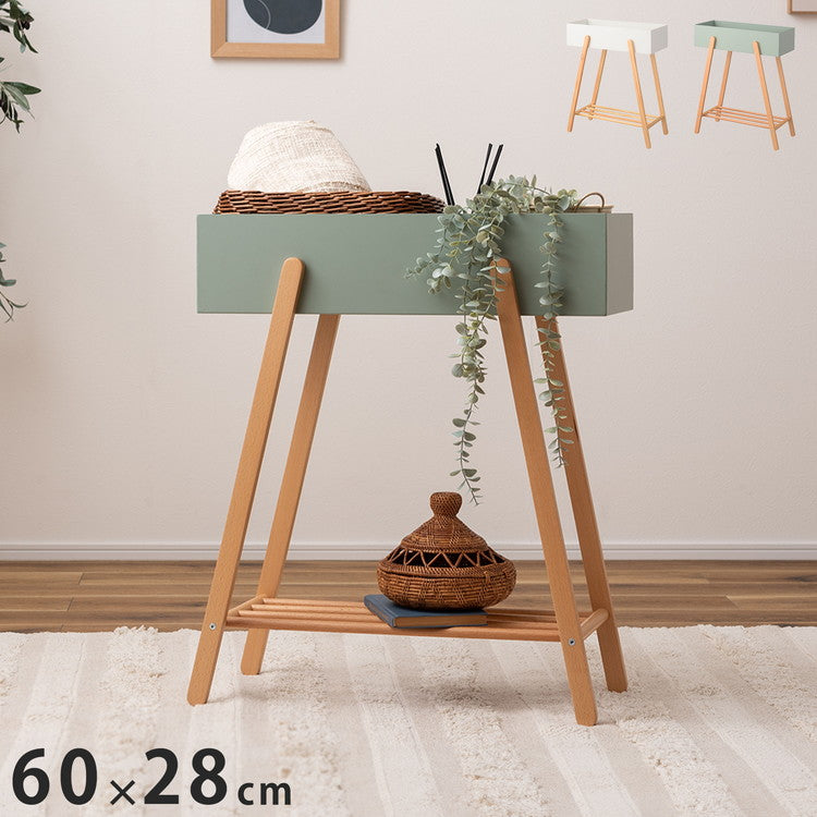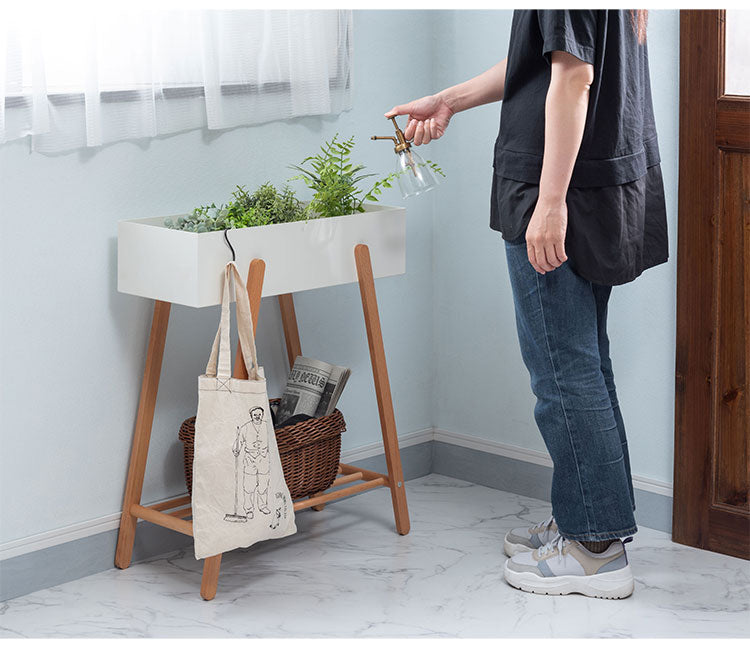 ナチュラルな木と優しい色合いをミックスした、植物をおしゃれに飾れるプランタースタンド。収納として室内でも使うことができます。