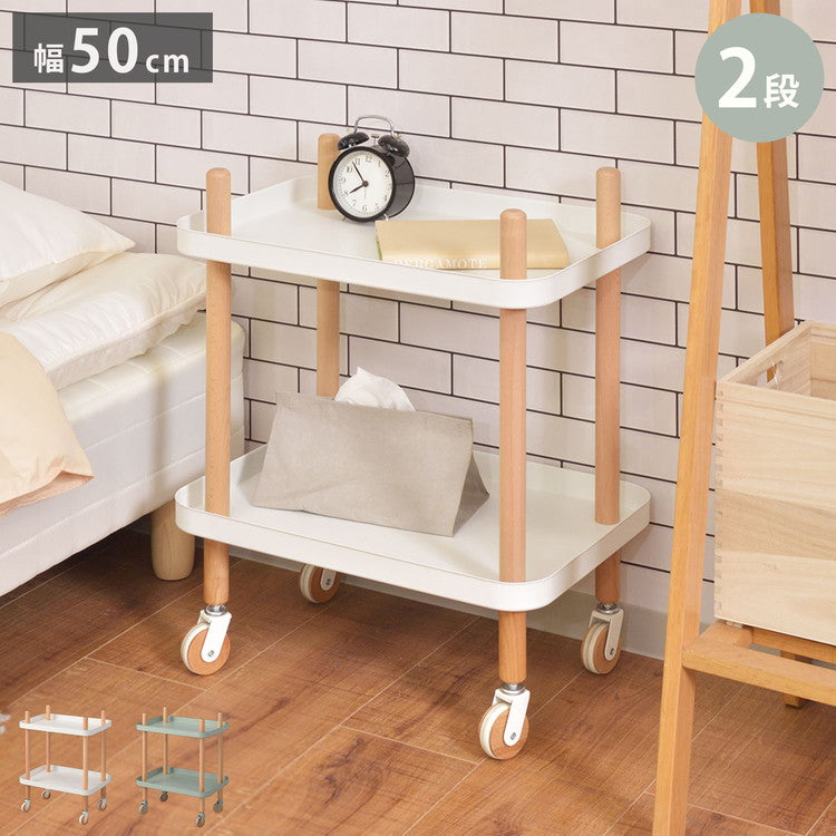ワゴン 2段 2D マルチワゴン キッチンワゴン サイドテーブル ナイトテーブル ベッドサイド キャスター トレー 木製 天然木 北欧 ナチュラル シンプル かわいい 収納 収納棚 棚 ラック マルチラック(代引不可)