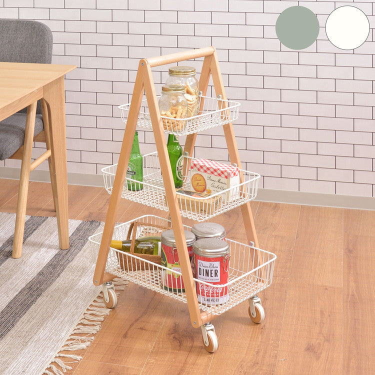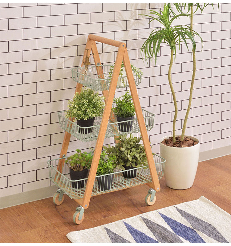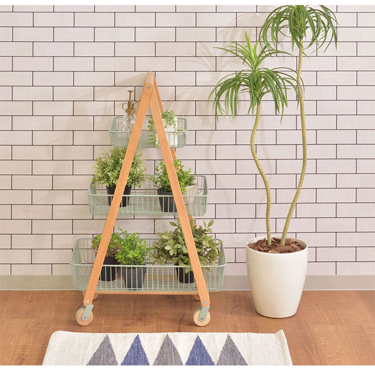 バスケットワゴン ワゴン バスケット キッチンワゴン ガーデンプランター フェイクグリーン 植物 観葉植物 天然木 木製 スチール 北欧 ナチュラル シンプル キャスター テーブルサイド ラック 棚(代引不可)