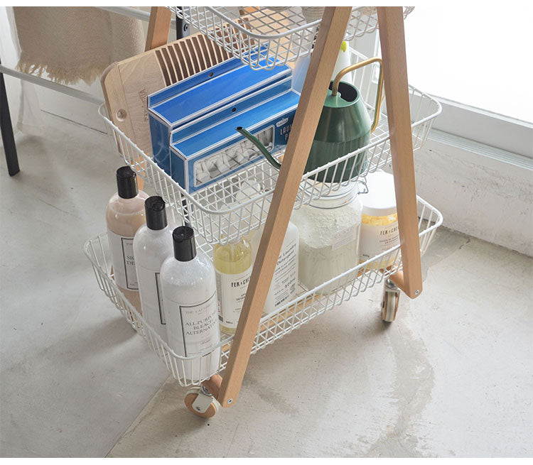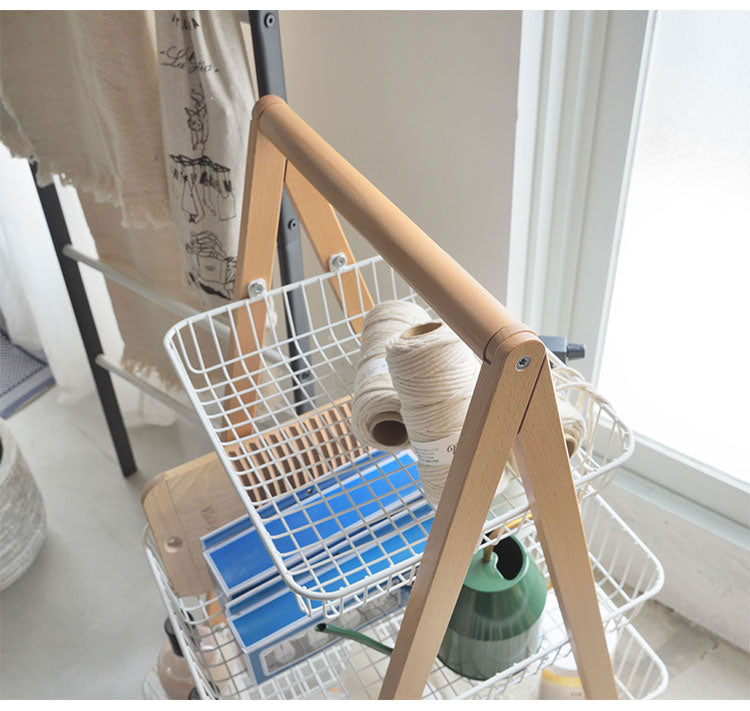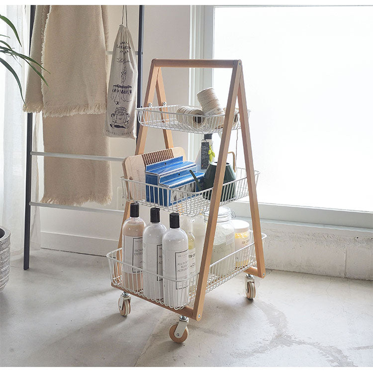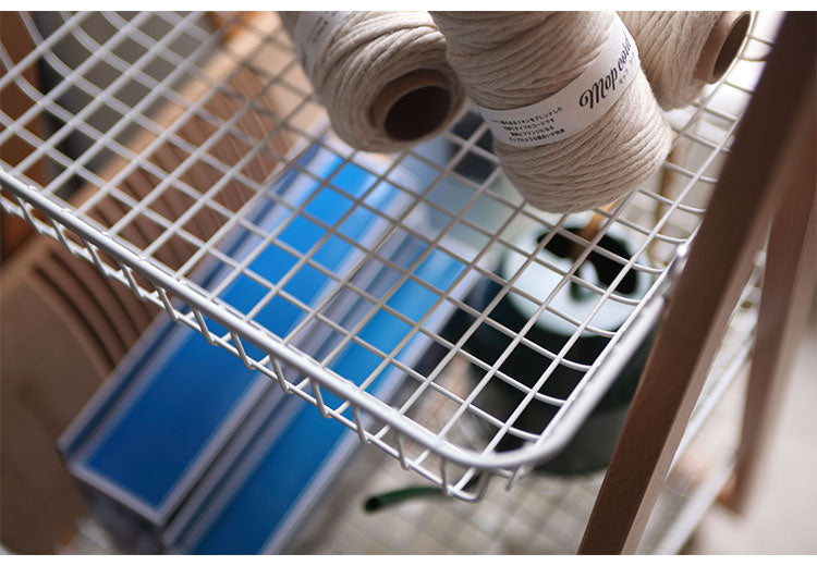 天然木とスチールの優しい色合いが、北欧ナチュラルなテイストを演出するバスケットワゴン”Sylph”。通気性の良いメッシュ仕様&キャスター付きなので、幅広いシーンで活躍します。