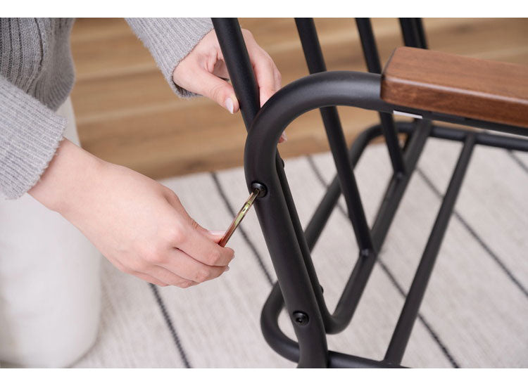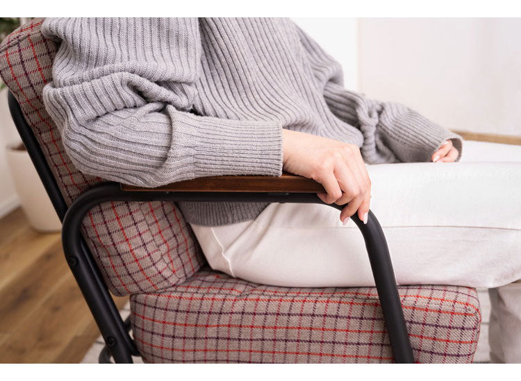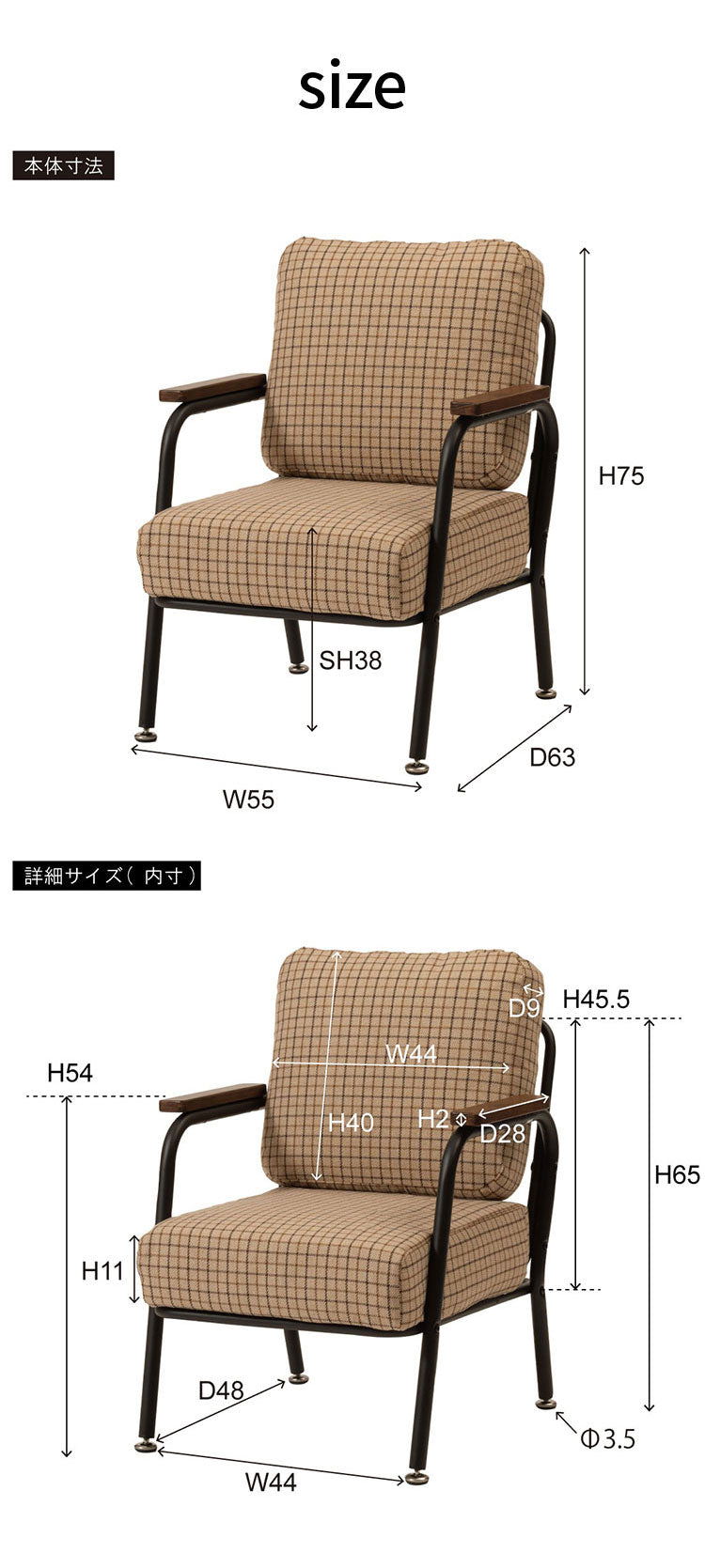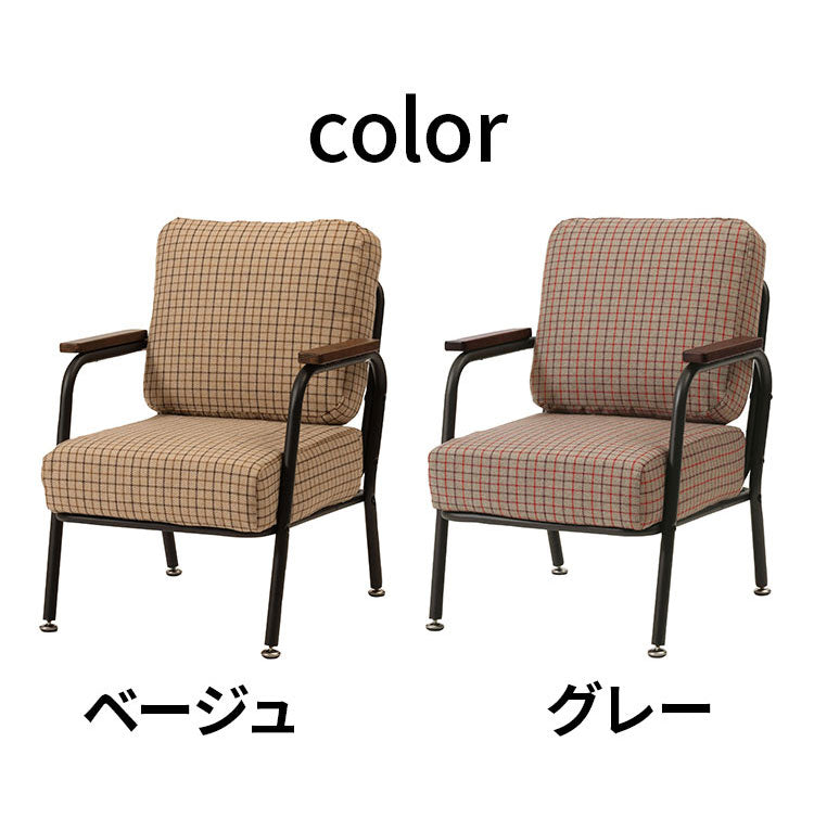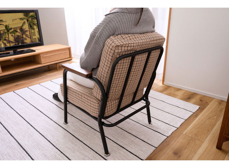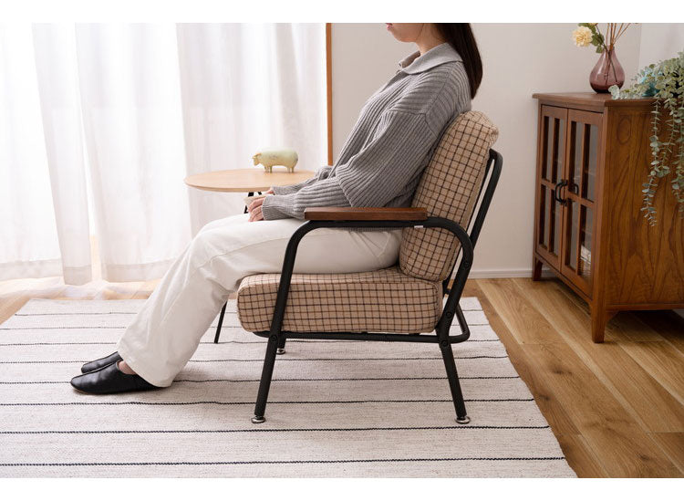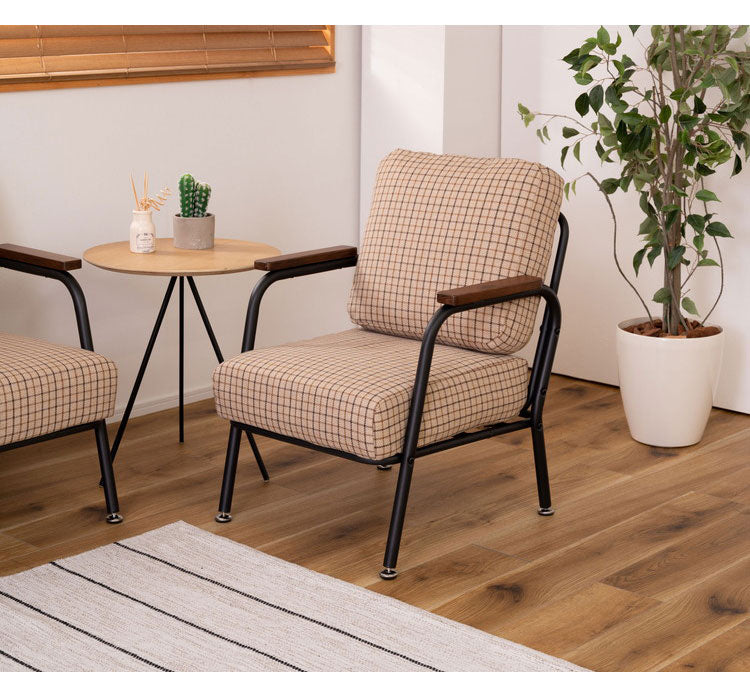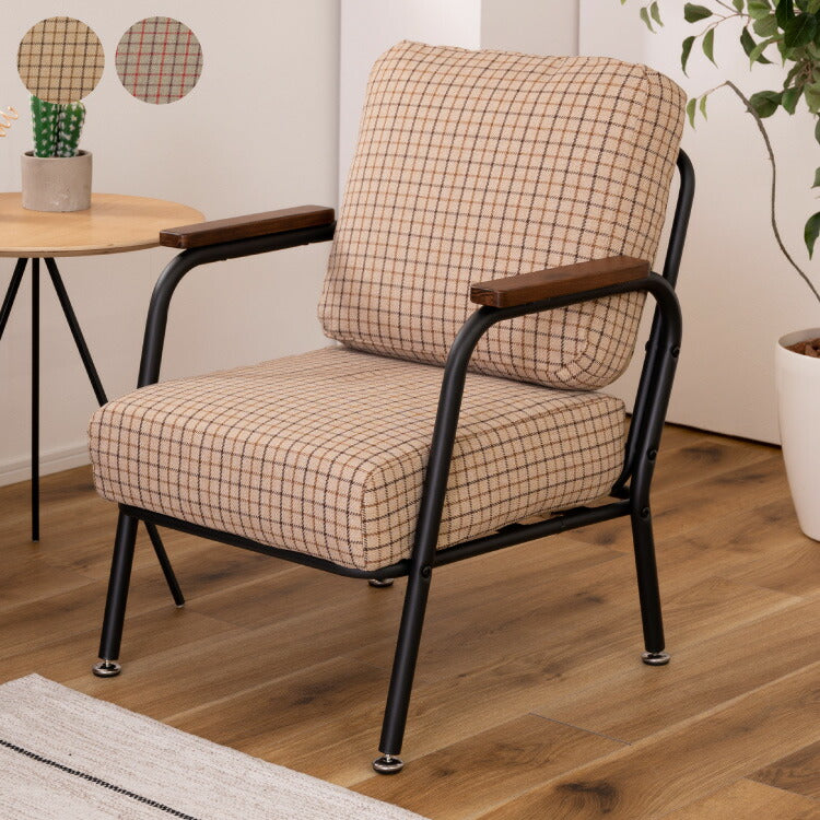 ソファ 1人掛け チェック柄 1人用 スチール パイプチェア おしゃれ 黒 ブラック 木肘 アーム付き 肘付き 肘掛け付き コンパクト レトロ 北欧 新生活(代引不可)