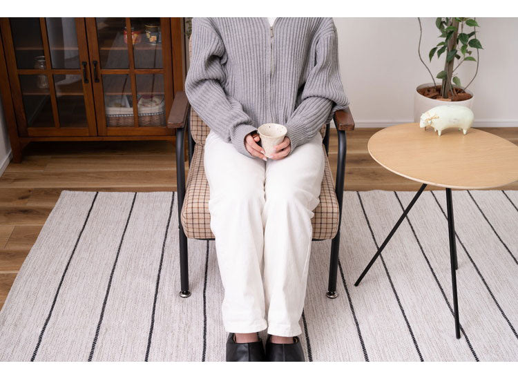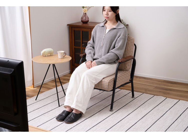 コンパクトなサイズでありながらアームが細いデザインとなっているので座面は広くゆったりと座れます。