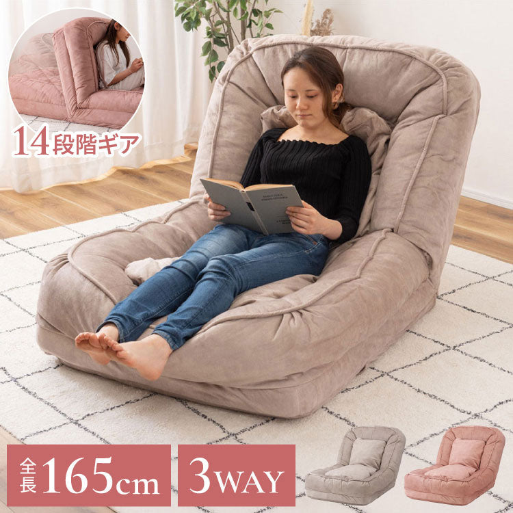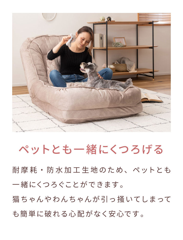 くすみカラー ソファベッド ソファ 奥行165cm クッション付属 リクライニング 14段階ギア 東谷 RKC-189 ソファー ソファベッド 折りたたみ 座椅子 ファブリック フラット カウチ ロー 防水加工 耐摩擦(代引不可)