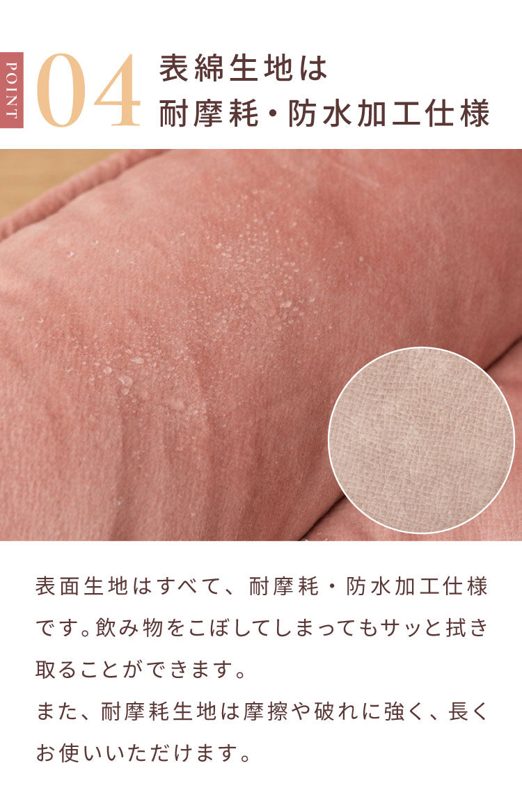 耐摩耗性・防水加工でペットを飼っているご家庭でも安心してお使いいただけます。