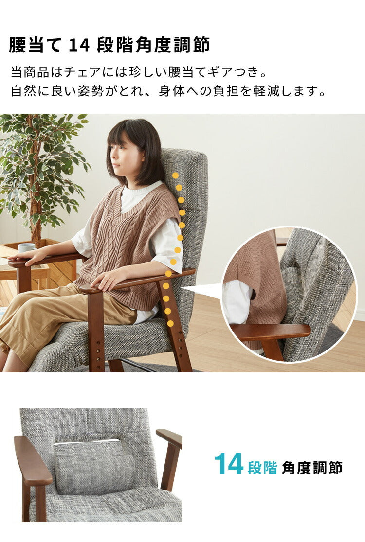パーソナルチェア リクライニング 14段階 高座椅子 座椅子 北欧 コンパクト レバー式 高さ調節 おしゃれ 一人用 リクライニングチェア リラックスチェア 背もたれ 肘掛け フロアチェア リビング(代引不可)