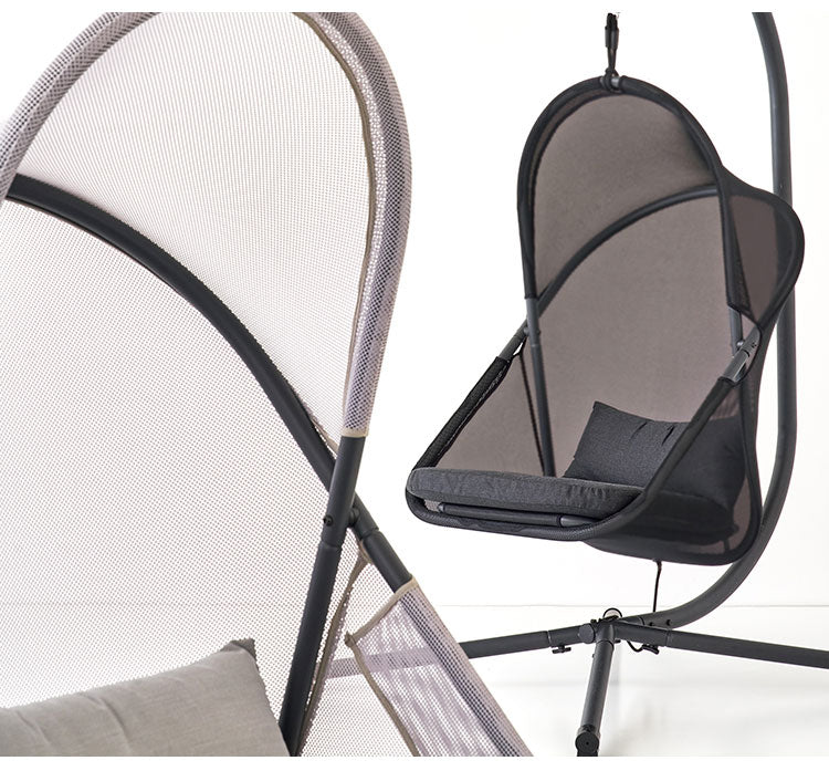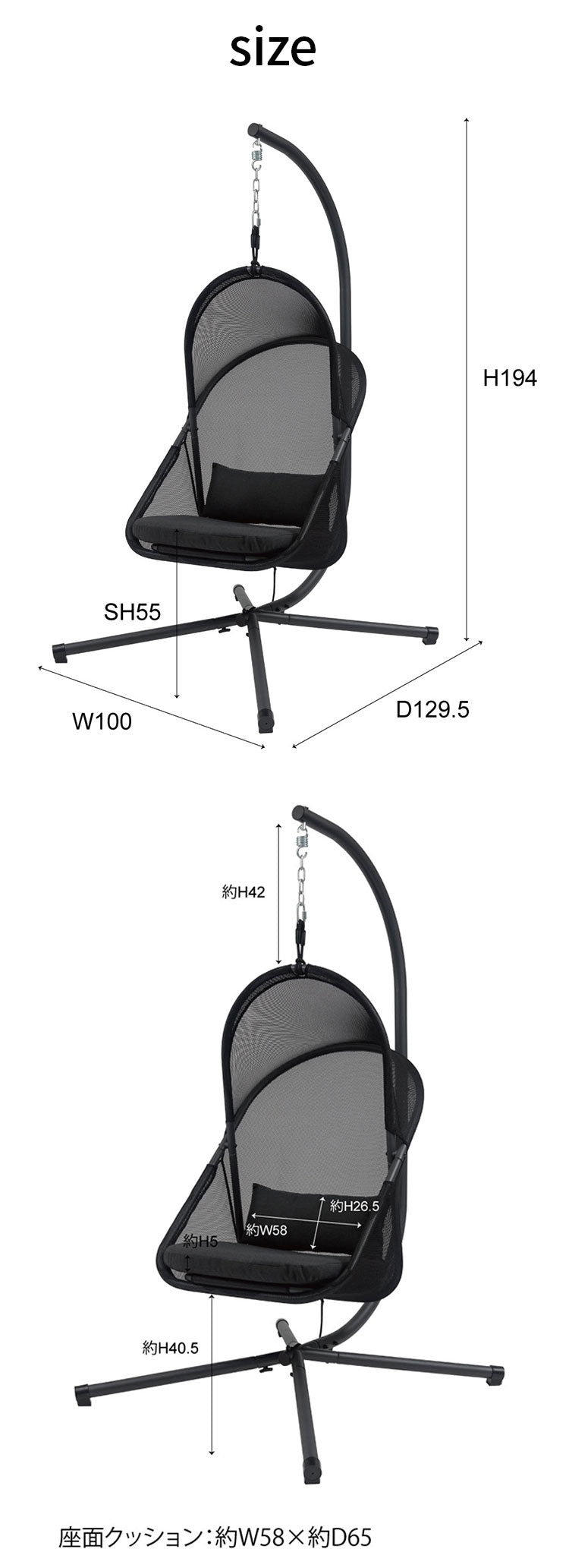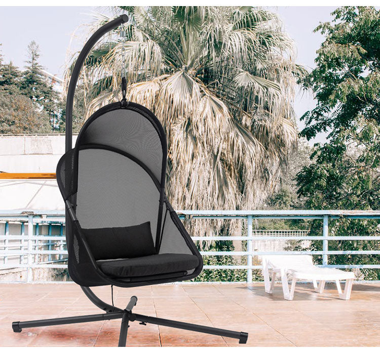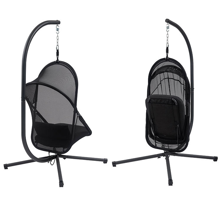ハンギングチェア 自立式 折りたたみ式 ガーデン ベランダ チェア 椅子 イス アウトドア ルーフ付き おしゃれ 北欧 吊り下げ 日よけ リゾート おしゃれ 大きめ ゆったり メッシュ ブラック(代引不可)