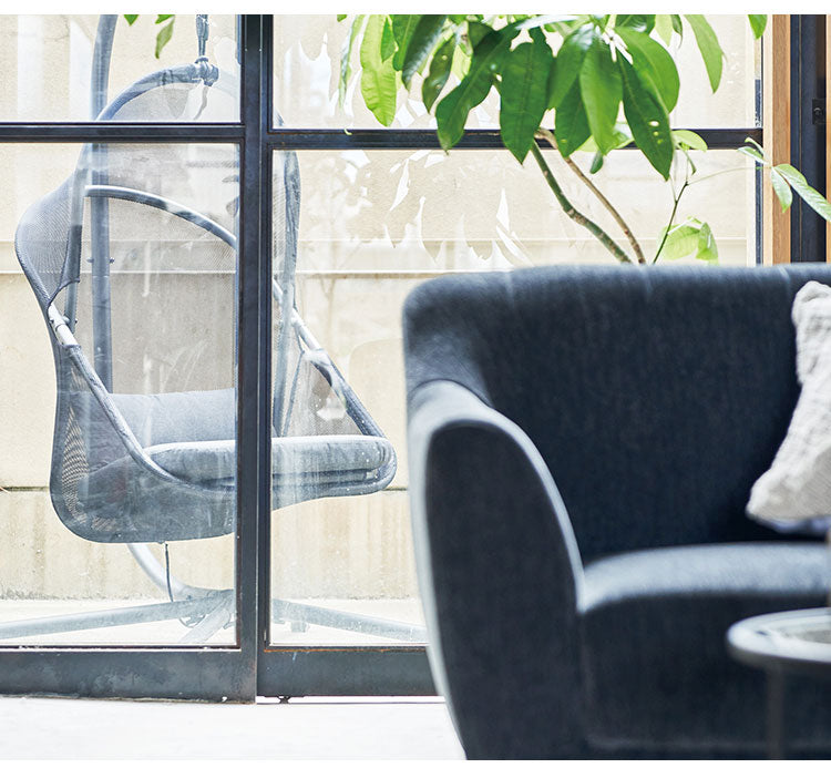 しっかりした設計で座るとゆらゆらと心地よさを感じることができます。シンプルで重量感のあるブラックカラーが空間のアクセントに。クッションと座面は取り外しが可能です。