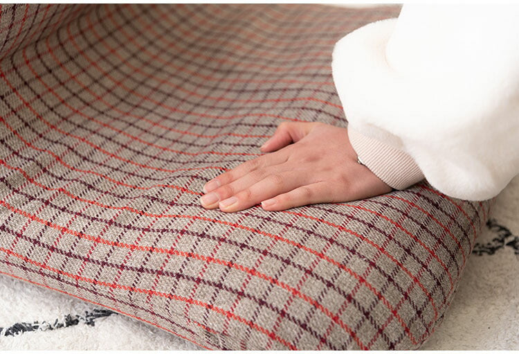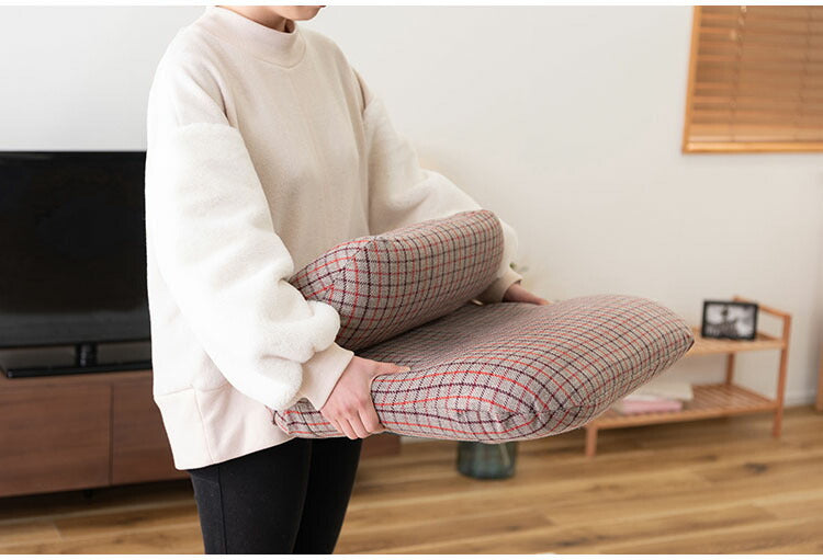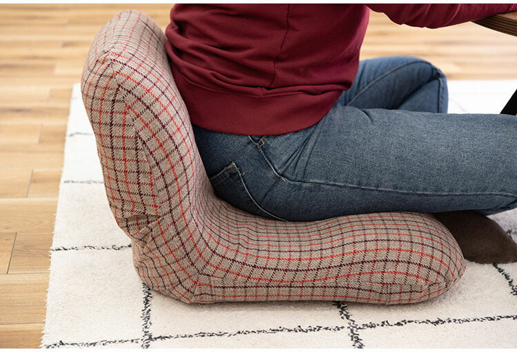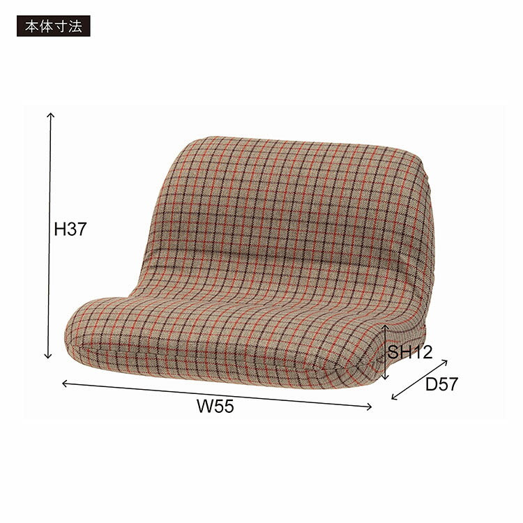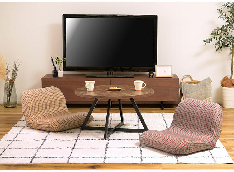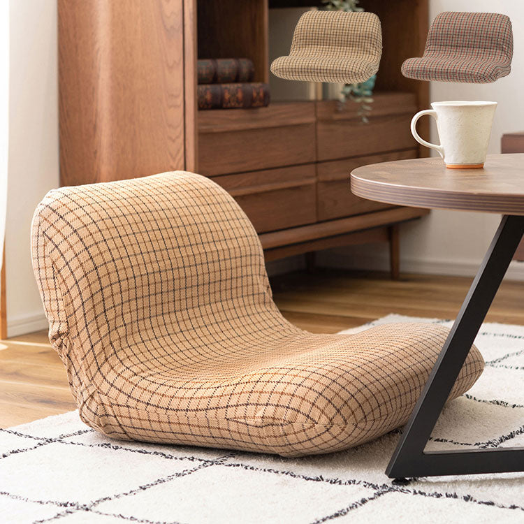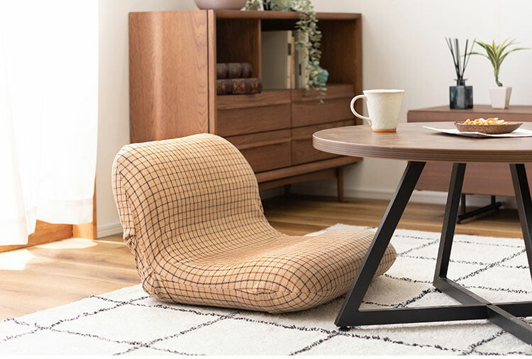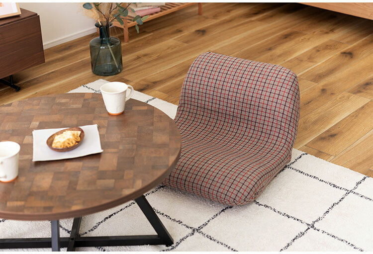 ●丸いフォルムとチェック柄がかわいいフロアチェア。●S字カーブの構造が身体にしっかりフィットし、ゆったりとくつろぐことができます。●背もたれを前に倒せばコンパクトサイズに。持ち運びがしやすく省スペース収納にも便利。●ワイドタイプなのでのんびりリラックスできるフロアチェア。●温もりのある優しい手触りのファブリック生地を使用。●背面も同じチェック柄の生地で仕上げてあるので、他のインテリアとの相性も良くしっくりと馴染みます。