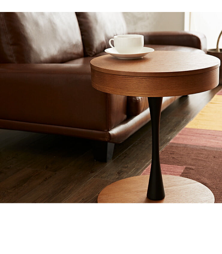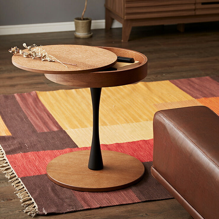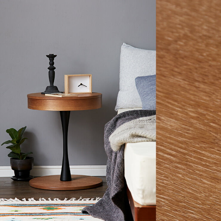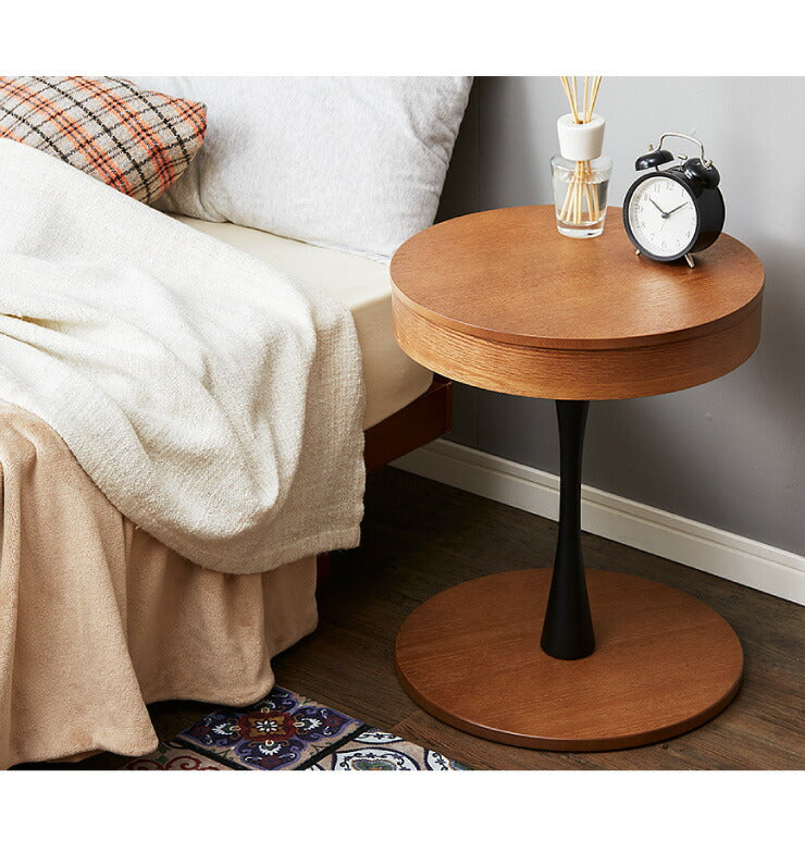オーク材使用 サイドテーブル 円形 直径40cm 木製 天板下収納 ナイトテーブル おしゃれ 便利 丸型 テーブル 収納 カフェ(代引不可)