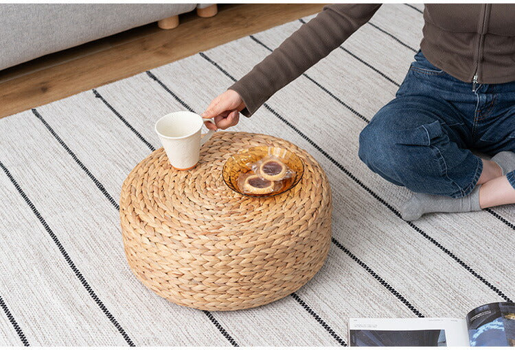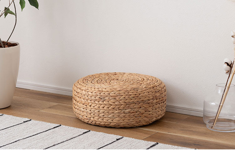 天然素材を活かした、ぬくもりのあるロースツール。丁寧に編み込まれており、一つ一つ表情が異なるところが魅力的です。カジュアル過ぎない、優しい雰囲気がお部屋に温かみを与えてくれます。
