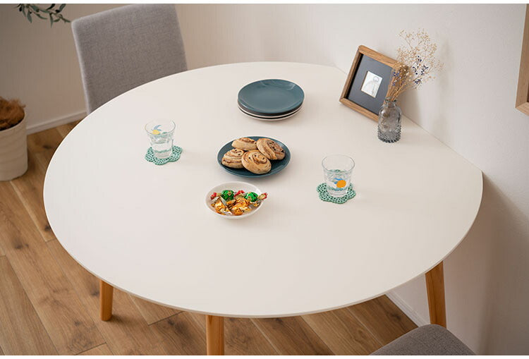 ダイニングテーブル テーブル 4人用 ラウンドテーブル 丸 ラウンド 変形 サークル 白 北欧 ナチュラル ホワイト 木製 天然木 幅120cm おしゃれ シンプル ダイニング 食卓机 壁付け(代引不可)
