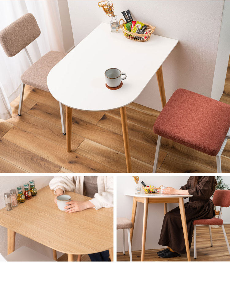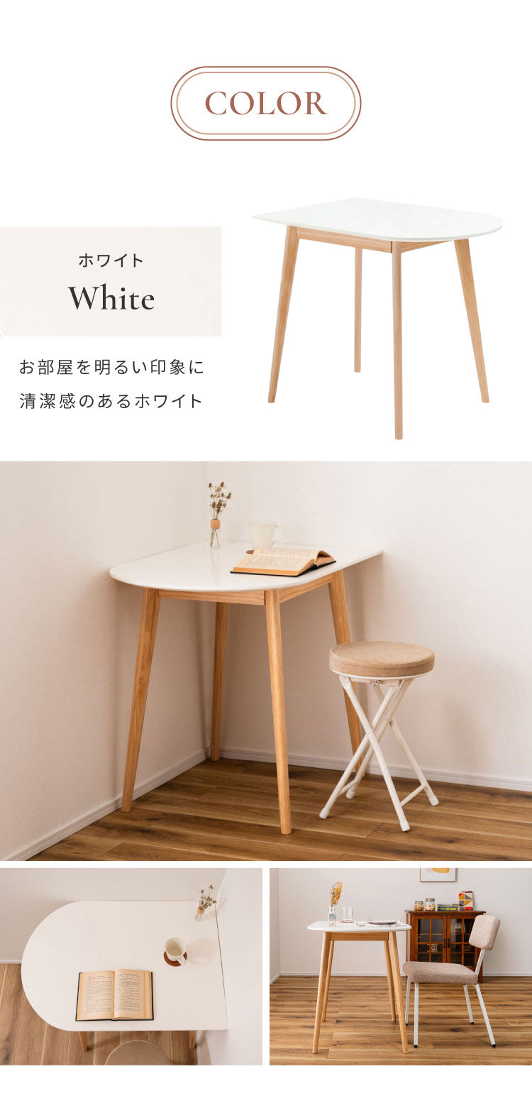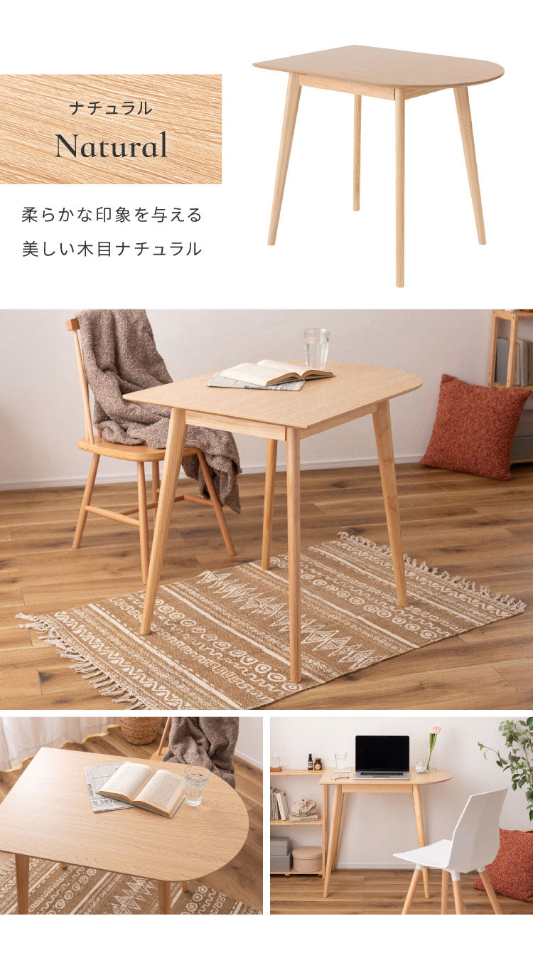 壁寄せできる半円ダイニングテーブル 天然木 円形×直線 TAP-006 東谷 変形 曲線 直線 半円 ハーフムーン 白 長方形 木製 デスク 1人用 2人用 二人掛け 小さめ 省スペース ナチュラル ホワイト(代引不可)