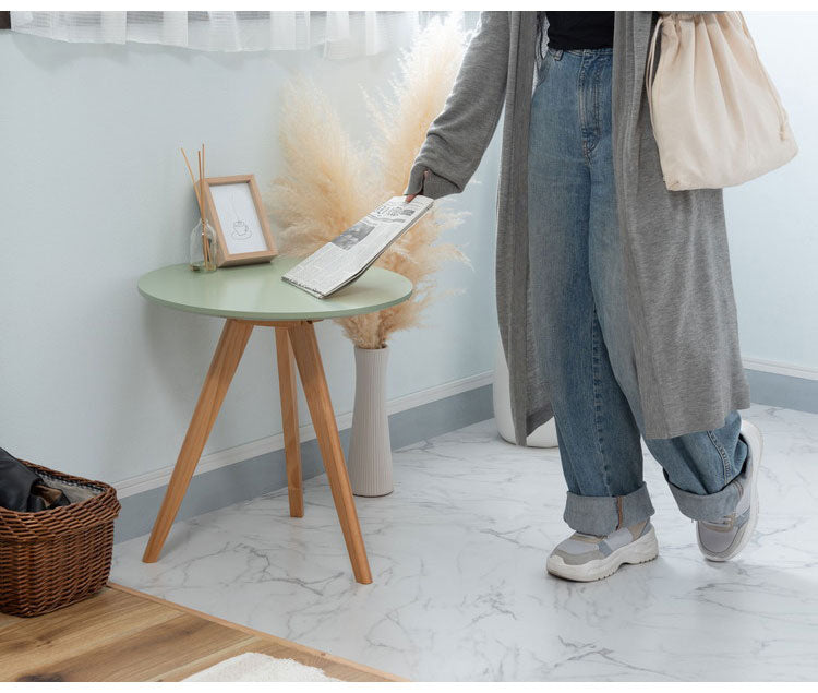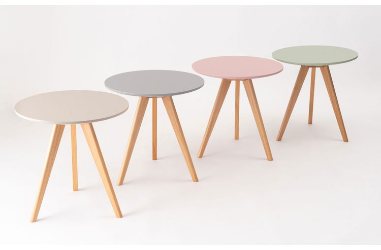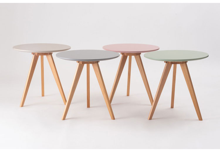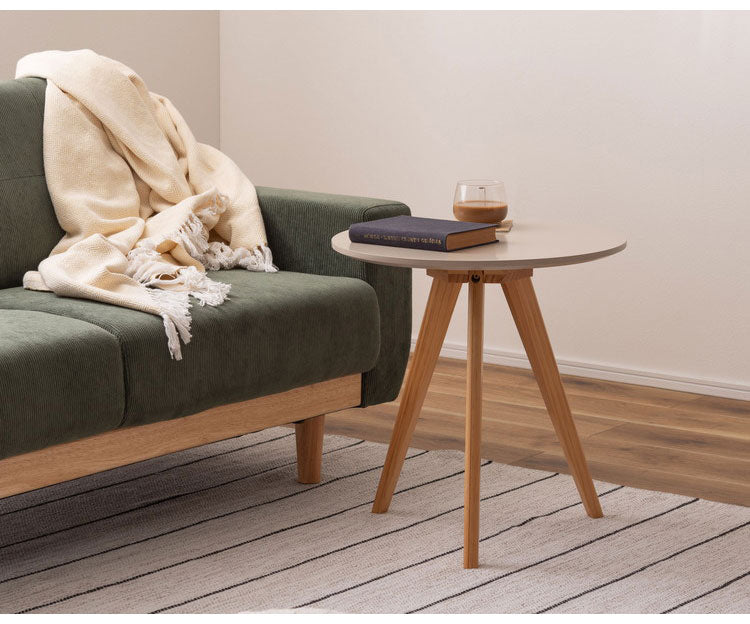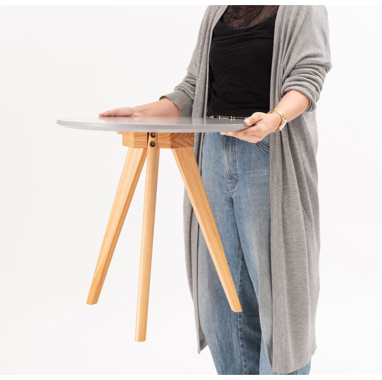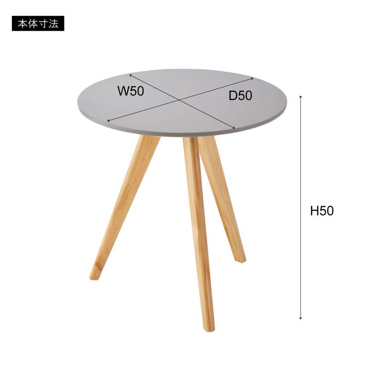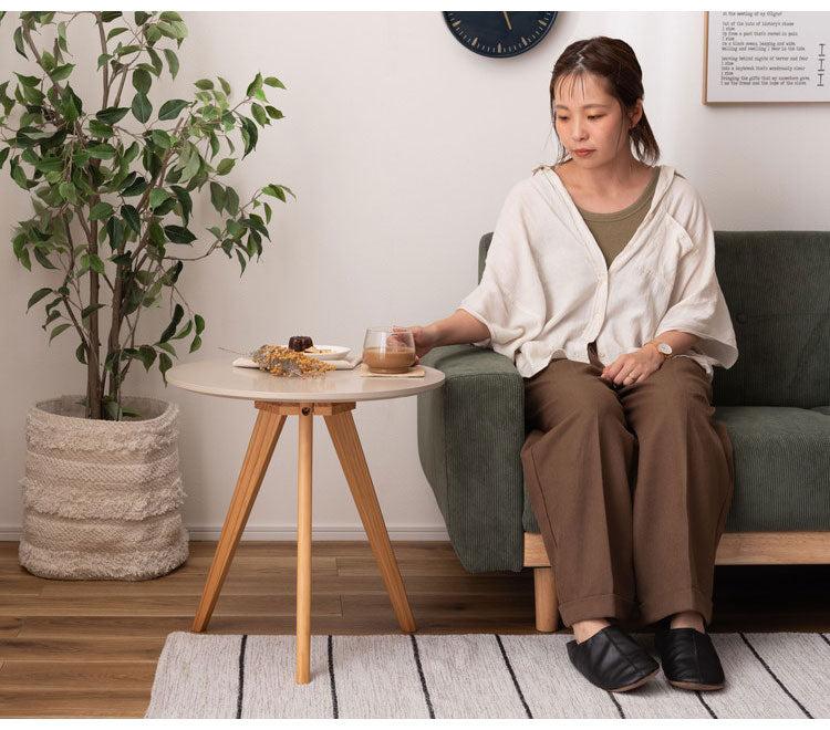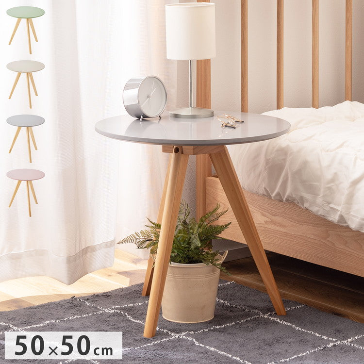 ●くすみカラーの天板と、天然木の三本脚が可愛らしさを存分に演出してくれるサイドテーブル。ソファやベッド横はもちろん、ちょっとしたディスプレイ台や、玄関先などにもオススメです。