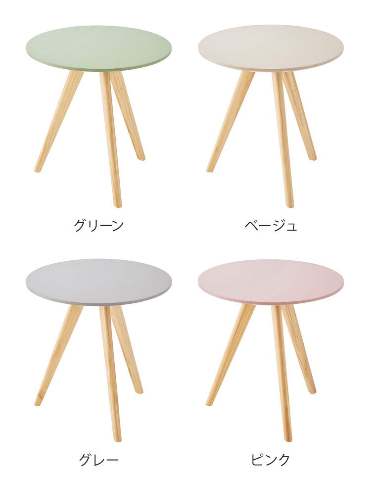 ラウンドサイドテーブル テーブル サイドテーブル ナイトテーブル ディスプレイ台 木製 天然木 パイン くすみカラー 三本脚 おしゃれ コンパクト シンプル 北欧 韓国 かわいい ナチュラル 一人暮らし(代引不可)