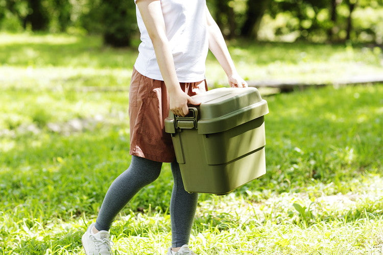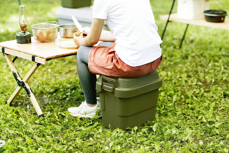 アウトドア キャンプ 収納ボックス 収納ケース 容量20リットル 箱 アウトドア 衣類収納 おもちゃ箱 フタ付き 座れる スツール プラスチック シンプル ミリタリー おしゃれ(代引不可)