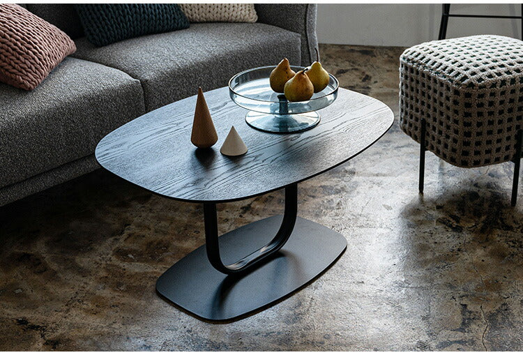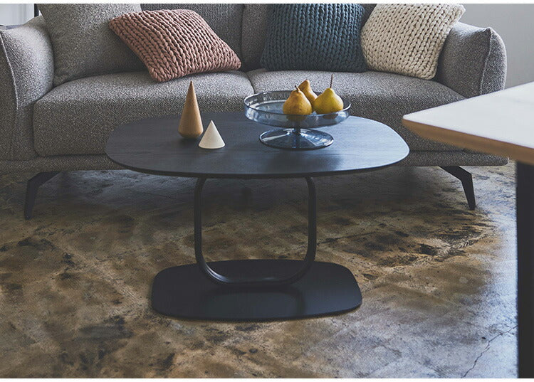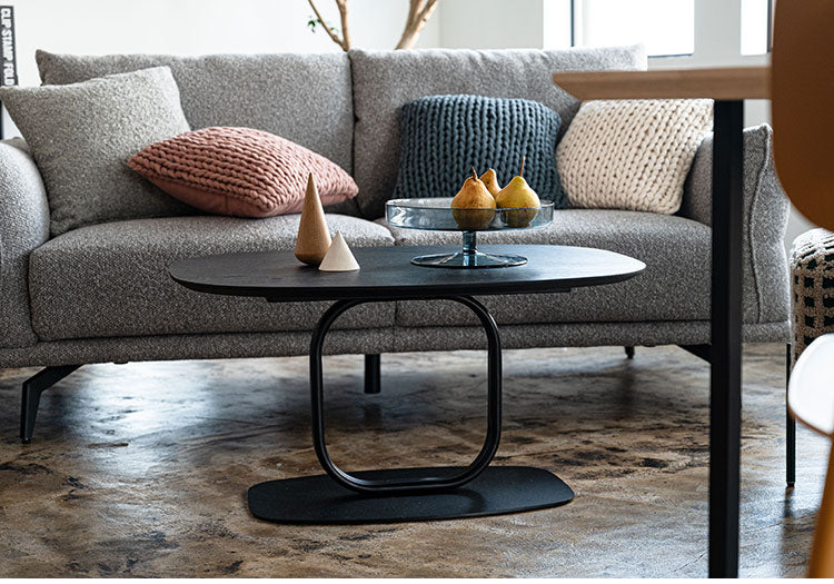 脚の抜け感が美しいテーブル 落ち着いた雰囲気とスタイリッシュさを兼ね備えた、リビングテーブル。デザイン性の高い脚が、モダンでセンスの良い空間を演出します。