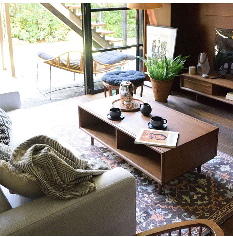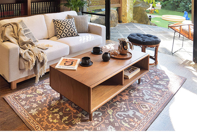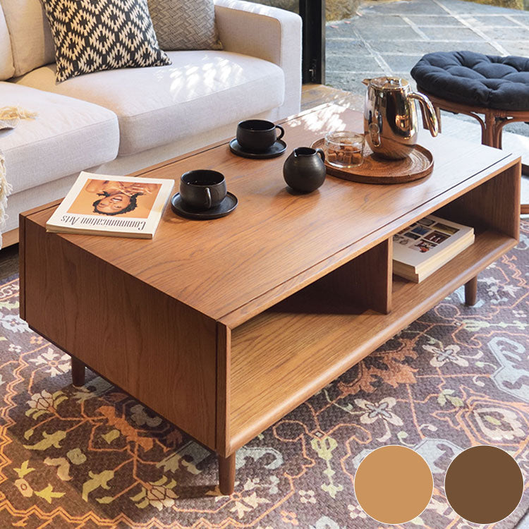 センターテーブル おしゃれ 北欧 リビングテーブル ローテーブル 机 木製 天然木 オープン 収納 ディスプレイ 幅110cm オーク ブラウン ナチュラル シンプル モダン ソファ リビング(代引不可)