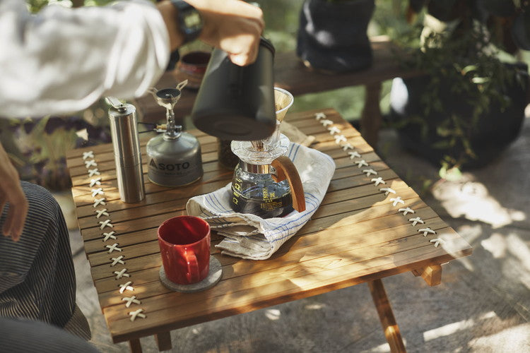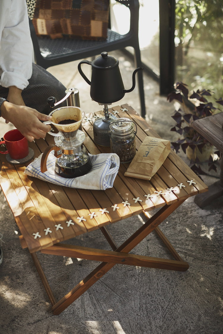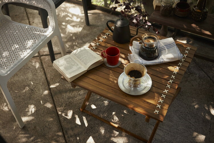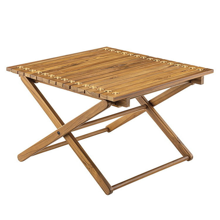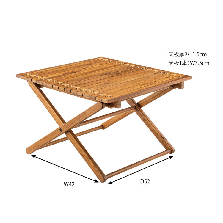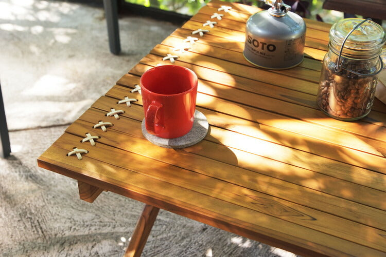 ロールトップテーブル ロールトップ テーブル 机 アウトドアテーブル フォールディングテーブル 折りたたみ アウトドア キャンプ ロータイプ 低い 低め 収納 持ち運び チーク材 本革 天然木 木製(代引不可)