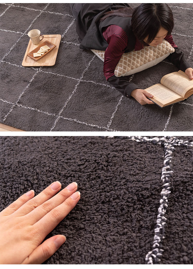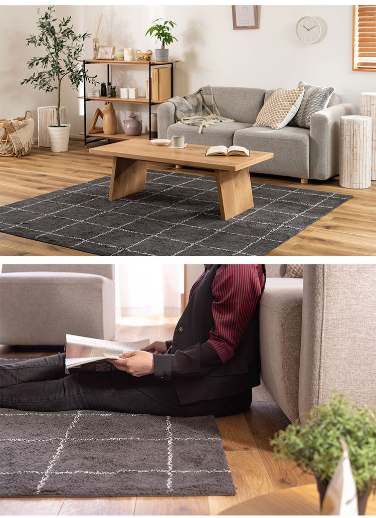 どんなインテリアにも合わせやすいシンプルなラグ。