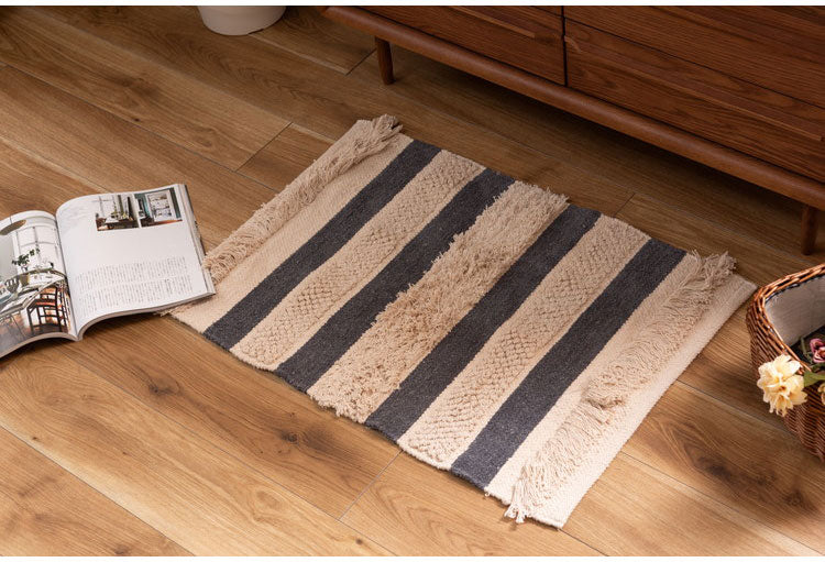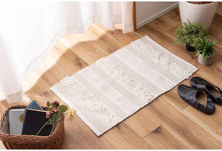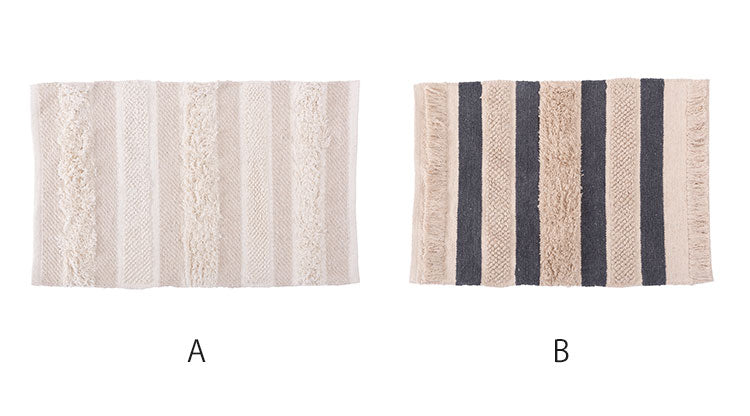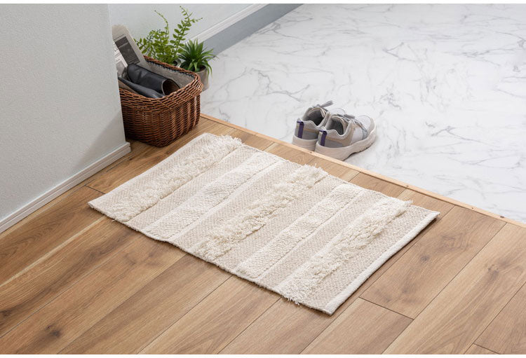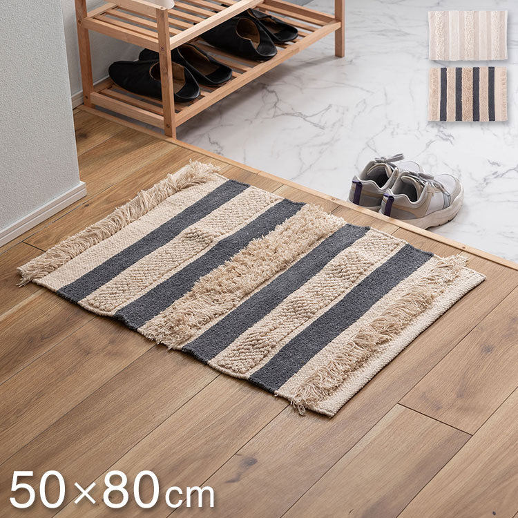 マット 幅50×奥行80cm 玄関マット ストライプ コットン 綿 ふわふわ かわいい おしゃれ 北欧 インテリア リビング ダイニング ナチュラル 手織り(代引不可)