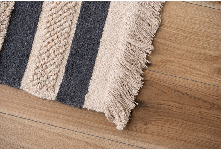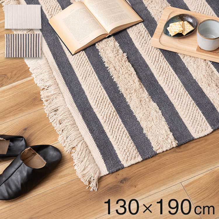 マット 幅130×奥行190cm 玄関マット ストライプ コットン 綿 ふわふわ かわいい おしゃれ 北欧 インテリア リビング ダイニング ナチュラル 手織り(代引不可)